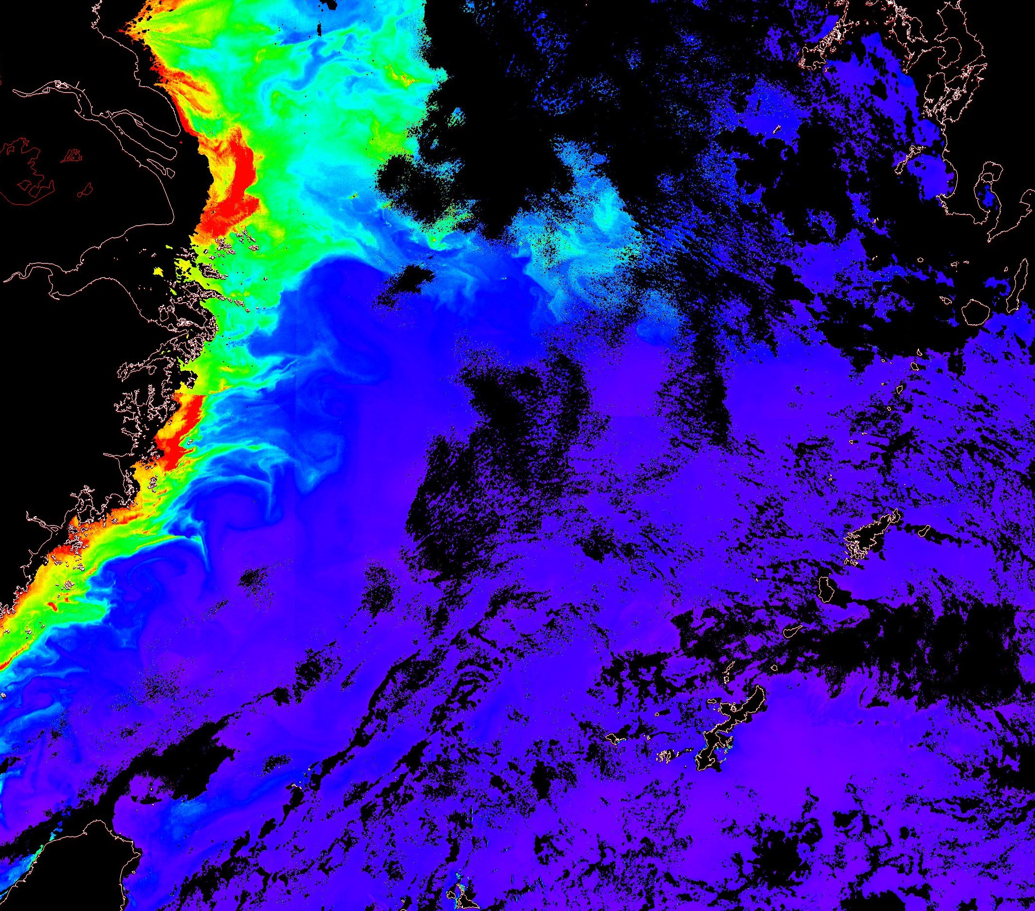o 2013년 08월 07일 천리안 GOCI 위성영상입니다. [ GOCI : Geostationary Ocean Color Imager ] o 농도분포는 하단 범례를 참고하시기 바랍니다. o 검은색은 구름을 나타냅니다. o 그림을 클릭하시면 크게 보실 수 있습니다. o 천리안 GOCI 클로로필 a 동해지역. o 천리안 GOCI 클로로필 a 서해지역. o 천리안 GOCI 클로로필 a 남해지역. 천리안 GOCI 클로로필 a 둥중국해지역. o 천리안 GOCI 클로로필 a 대화퇴지역. ![]() 천리안 GOCI 영상은 한국해양과학기술원 해양위성센터에서 수신하였습니다. |