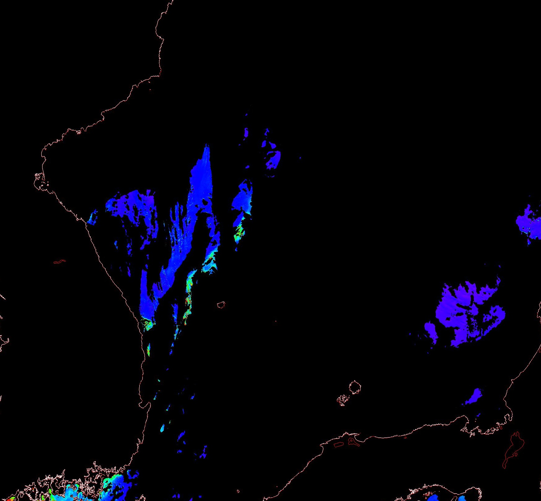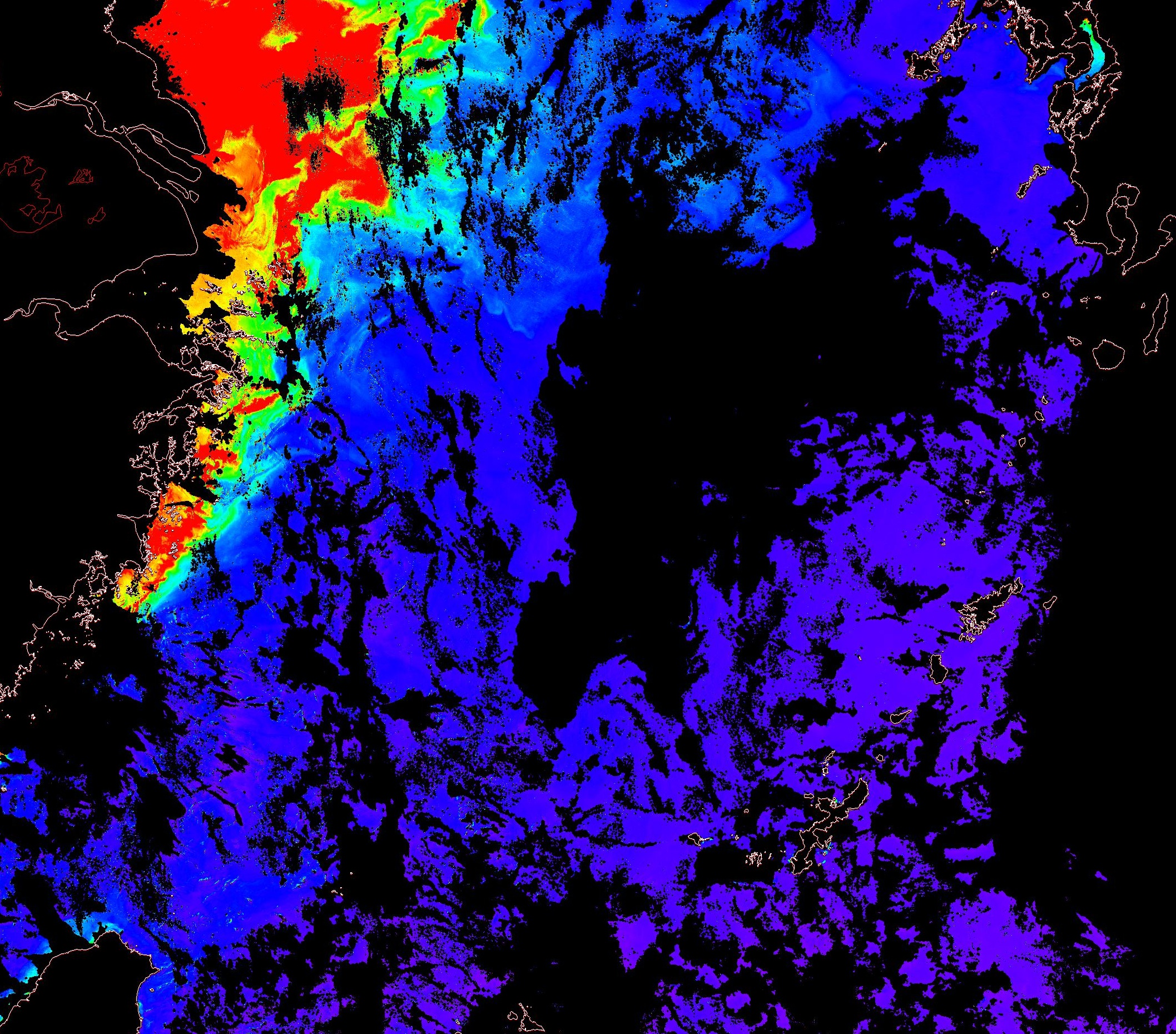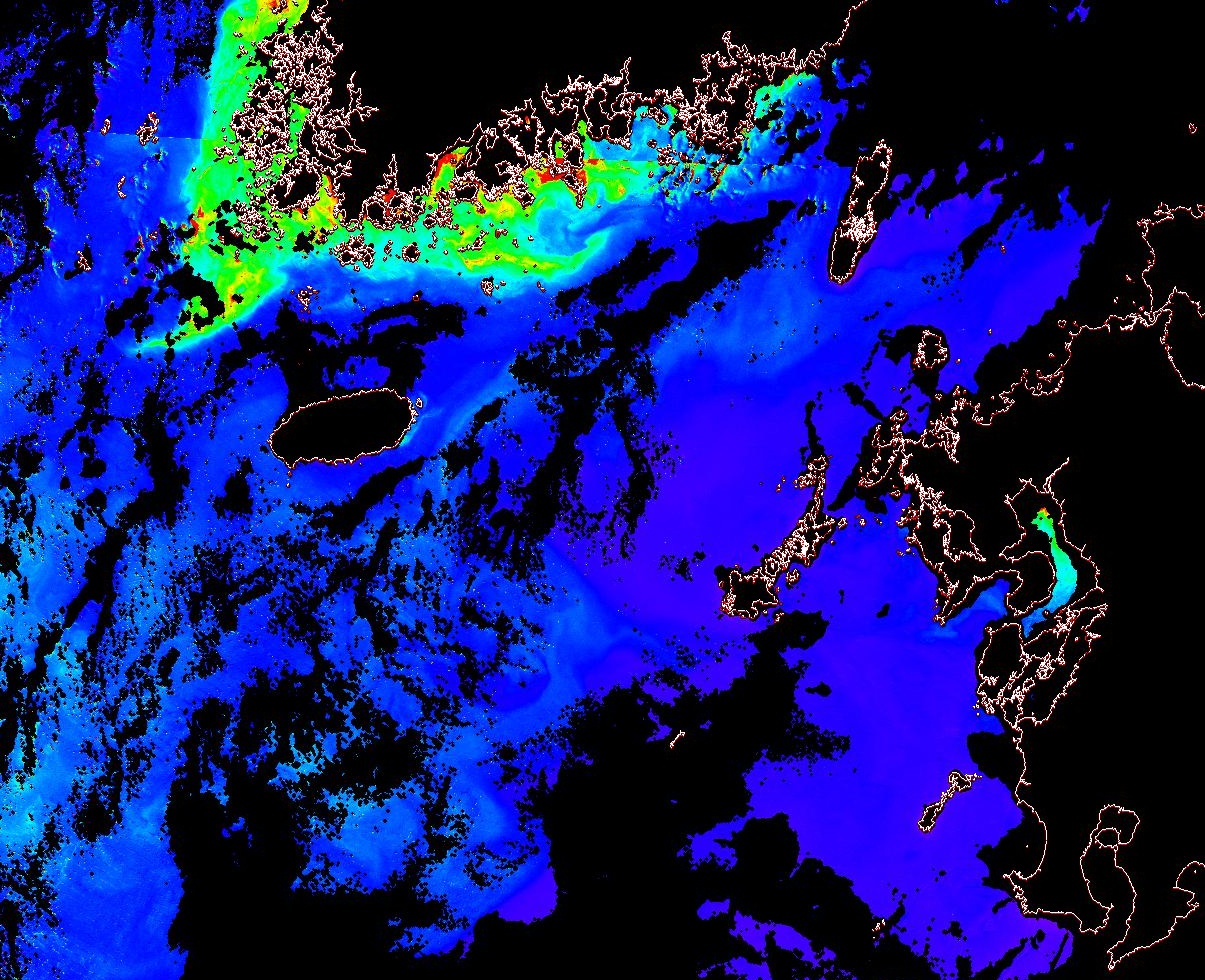 o 2013년 08월 16일 천리안 GOCI 위성영상입니다. [ GOCI : Geostationary Ocean Color Imager ] o 농도분포는 하단 범례를 참고하시기 바랍니다. o 검은색은 구름을 나타냅니다. o 그림을 클릭하시면 크게 보실 수 있습니다. o 천리안 GOCI 클로로필 a 동해지역. o 천리안 GOCI 클로로필 a 서해지역. o 천리안 GOCI 클로로필 a 남해지역. 천리안 GOCI 클로로필 a 둥중국해지역. o 천리안 GOCI 클로로필 a 대화퇴지역. ![]() 천리안 GOCI 영상은 한국해양과학기술원 해양위성센터에서 수신하였습니다. |