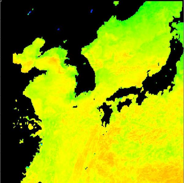 국립수산과학원 위성해양정보실에서 연구중인 2013년 08월 23일 구름이 배제된 수온 영상입니다.