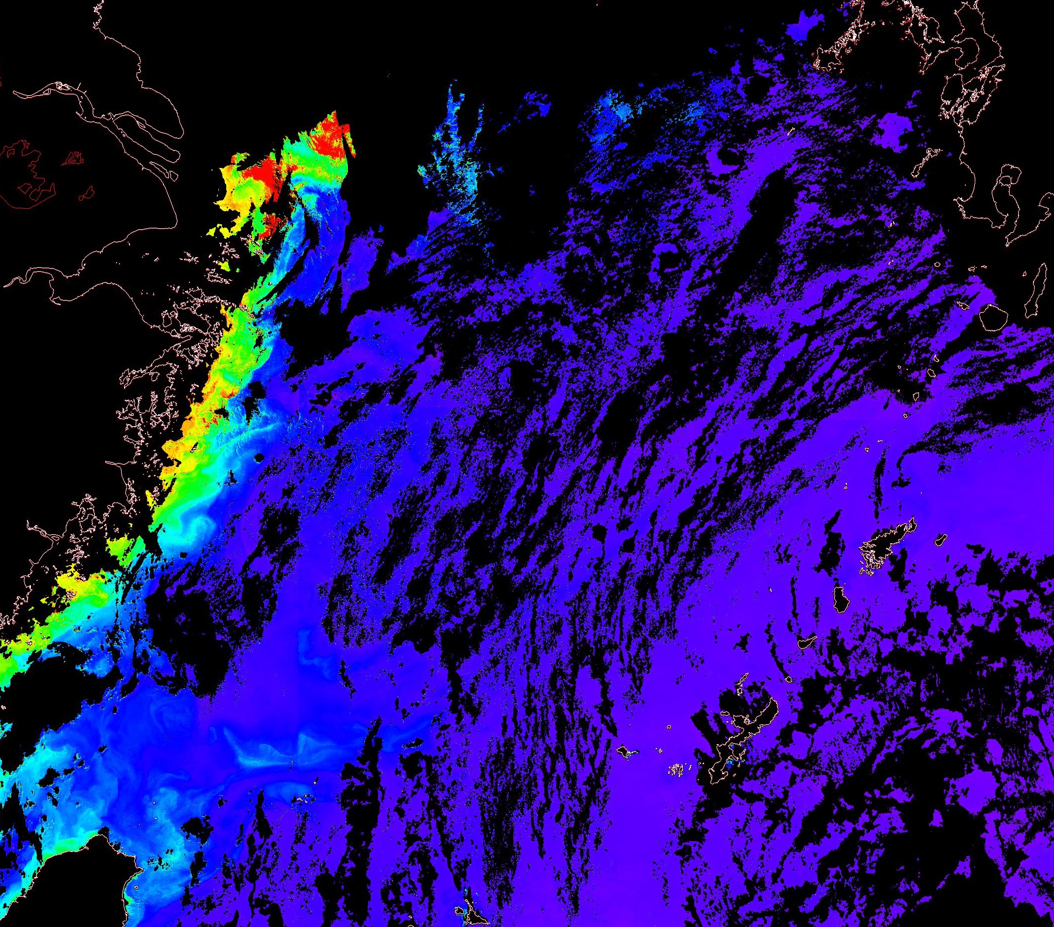 o 2013년 08월 24일 천리안 GOCI 위성영상입니다. [ GOCI : Geostationary Ocean Color Imager ] o 농도분포는 하단 범례를 참고하시기 바랍니다. o 검은색은 구름을 나타냅니다. o 그림을 클릭하시면 크게 보실 수 있습니다. o 천리안 GOCI 클로로필 a 동해지역. o 천리안 GOCI 클로로필 a 서해지역. o 천리안 GOCI 클로로필 a 남해지역. 천리안 GOCI 클로로필 a 둥중국해지역. o 천리안 GOCI 클로로필 a 대화퇴지역. ![]() 천리안 GOCI 영상은 한국해양과학기술원 해양위성센터에서 수신하였습니다. |