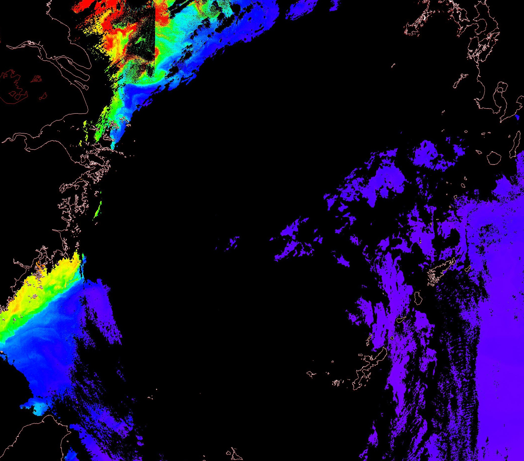 o 2013년 09월 02일 천리안 GOCI 위성영상입니다. [ GOCI : Geostationary Ocean Color Imager ] o 농도분포는 하단 범례를 참고하시기 바랍니다. o 검은색은 구름을 나타냅니다. o 그림을 클릭하시면 크게 보실 수 있습니다. o 천리안 GOCI 클로로필 a 동해지역. o 천리안 GOCI 클로로필 a 서해지역. o 천리안 GOCI 클로로필 a 남해지역. 천리안 GOCI 클로로필 a 둥중국해지역. o 천리안 GOCI 클로로필 a 대화퇴지역. ![]() 천리안 GOCI 영상은 한국해양과학기술원 해양위성센터에서 수신하였습니다. |