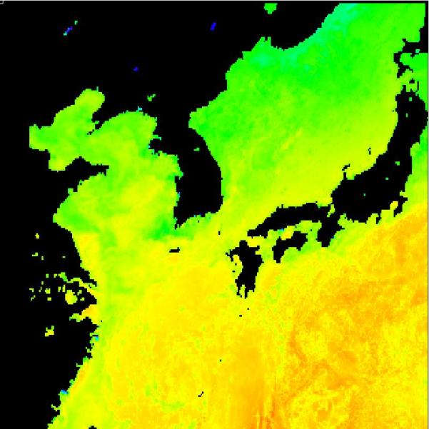 국립수산과학원 위성해양정보실에서 연구중인 2013년 09월 02일 구름이 배제된 수온 영상입니다.