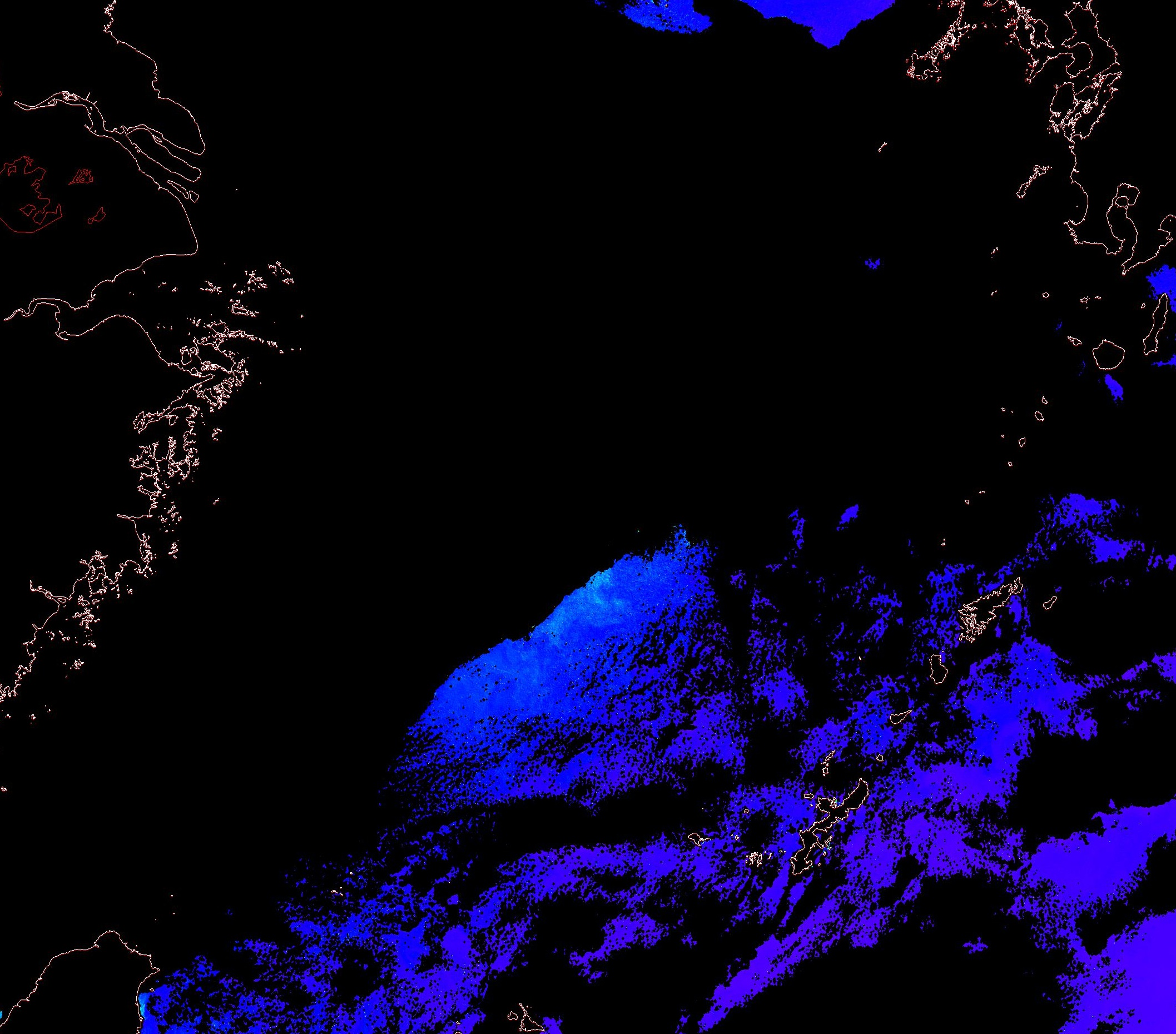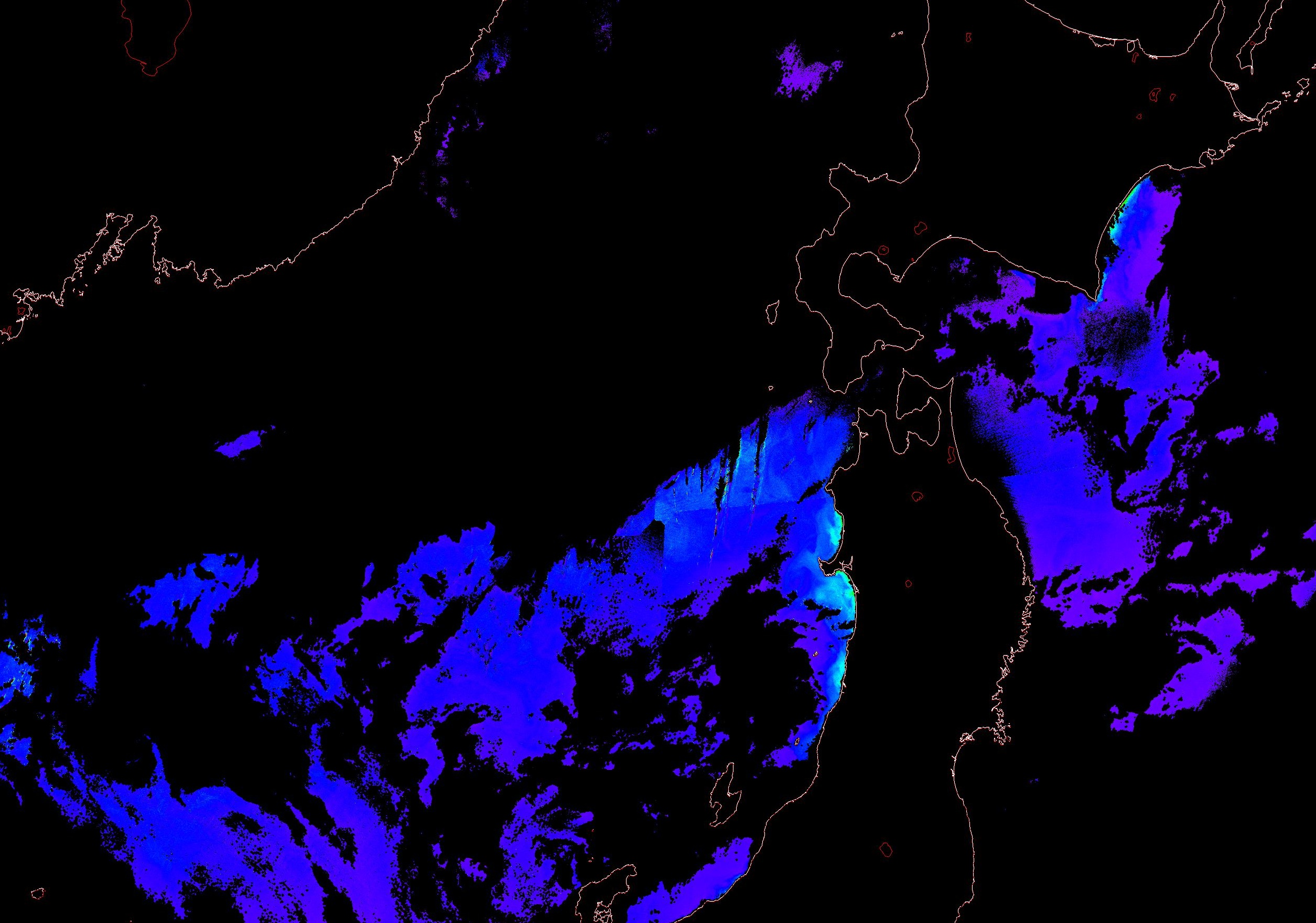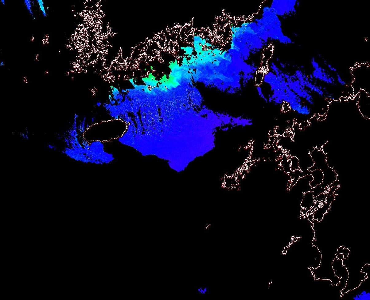 o 2013년 12월 04일 천리안 GOCI 위성영상입니다. [ GOCI : Geostationary Ocean Color Imager ] o 농도분포는 하단 범례를 참고하시기 바랍니다. o 검은색은 구름을 나타냅니다. o 그림을 클릭하시면 크게 보실 수 있습니다. o 천리안 GOCI 클로로필 a 동해지역. o 천리안 GOCI 클로로필 a 서해지역. o 천리안 GOCI 클로로필 a 남해지역. 천리안 GOCI 클로로필 a 둥중국해지역. o 천리안 GOCI 클로로필 a 대화퇴지역. ![]() 천리안 GOCI 영상은 한국해양과학기술원 해양위성센터에서 수신하였습니다. |