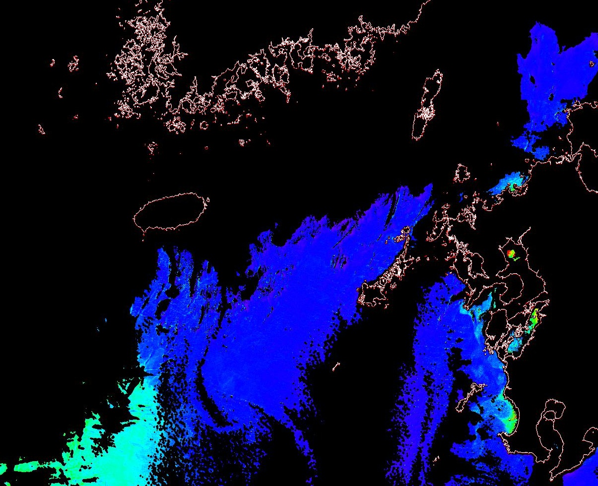 o 2013년 12월 05일 천리안 GOCI 위성영상입니다. [ GOCI : Geostationary Ocean Color Imager ] o 농도분포는 하단 범례를 참고하시기 바랍니다. o 검은색은 구름을 나타냅니다. o 그림을 클릭하시면 크게 보실 수 있습니다. o 천리안 GOCI 클로로필 a 동해지역. o 천리안 GOCI 클로로필 a 서해지역. o 천리안 GOCI 클로로필 a 남해지역. 천리안 GOCI 클로로필 a 둥중국해지역. o 천리안 GOCI 클로로필 a 대화퇴지역. ![]() 천리안 GOCI 영상은 한국해양과학기술원 해양위성센터에서 수신하였습니다. |