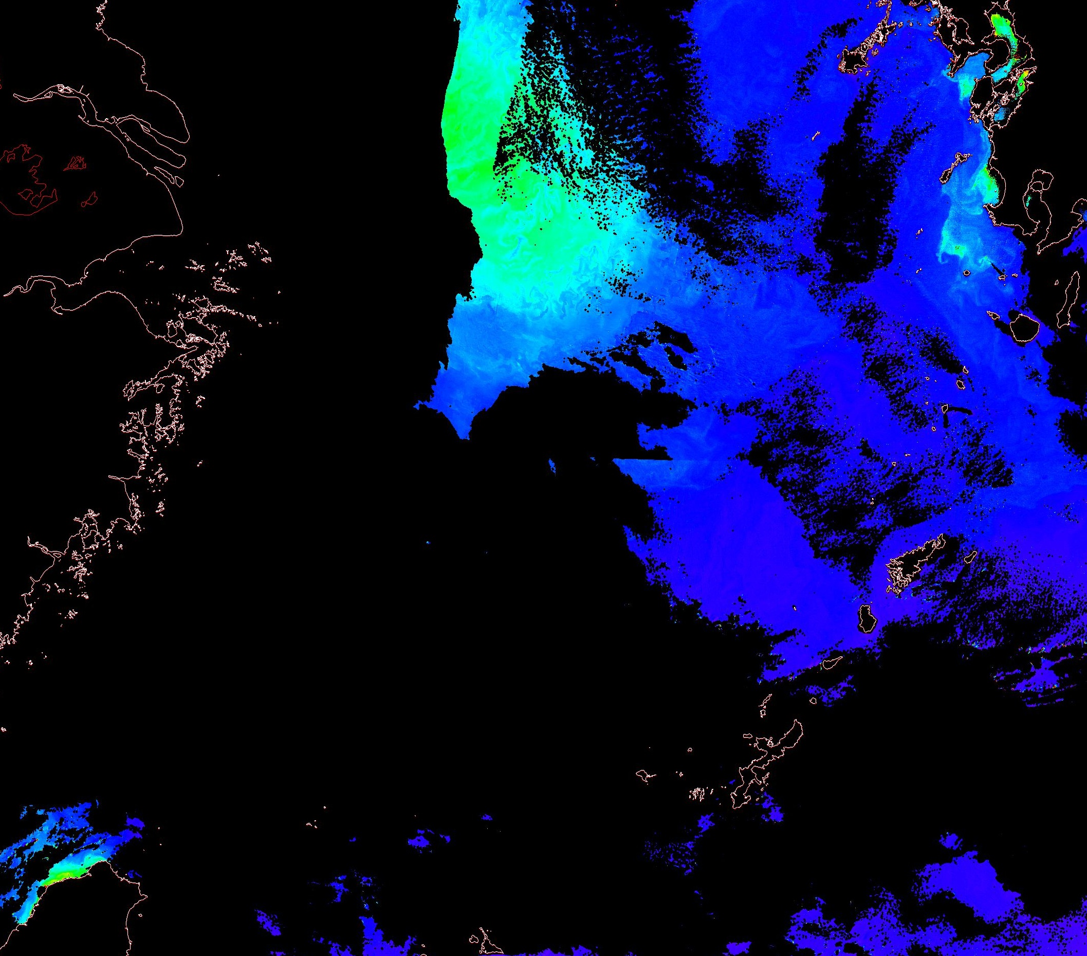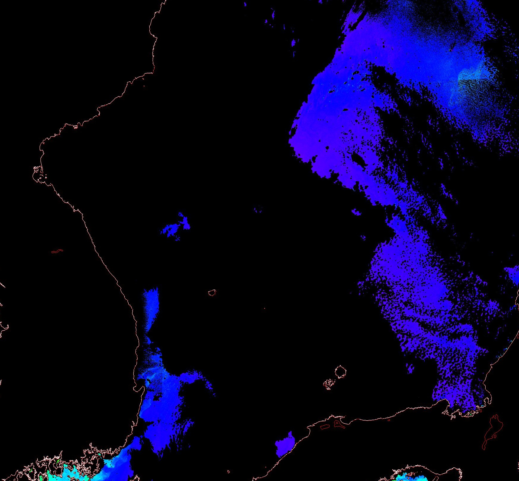o 2013년 12월 08일 천리안 GOCI 위성영상입니다. [ GOCI : Geostationary Ocean Color Imager ] o 농도분포는 하단 범례를 참고하시기 바랍니다. o 검은색은 구름을 나타냅니다. o 그림을 클릭하시면 크게 보실 수 있습니다. o 천리안 GOCI 클로로필 a 동해지역. o 천리안 GOCI 클로로필 a 서해지역. o 천리안 GOCI 클로로필 a 남해지역. 천리안 GOCI 클로로필 a 둥중국해지역. o 천리안 GOCI 클로로필 a 대화퇴지역. ![]() 천리안 GOCI 영상은 한국해양과학기술원 해양위성센터에서 수신하였습니다. |