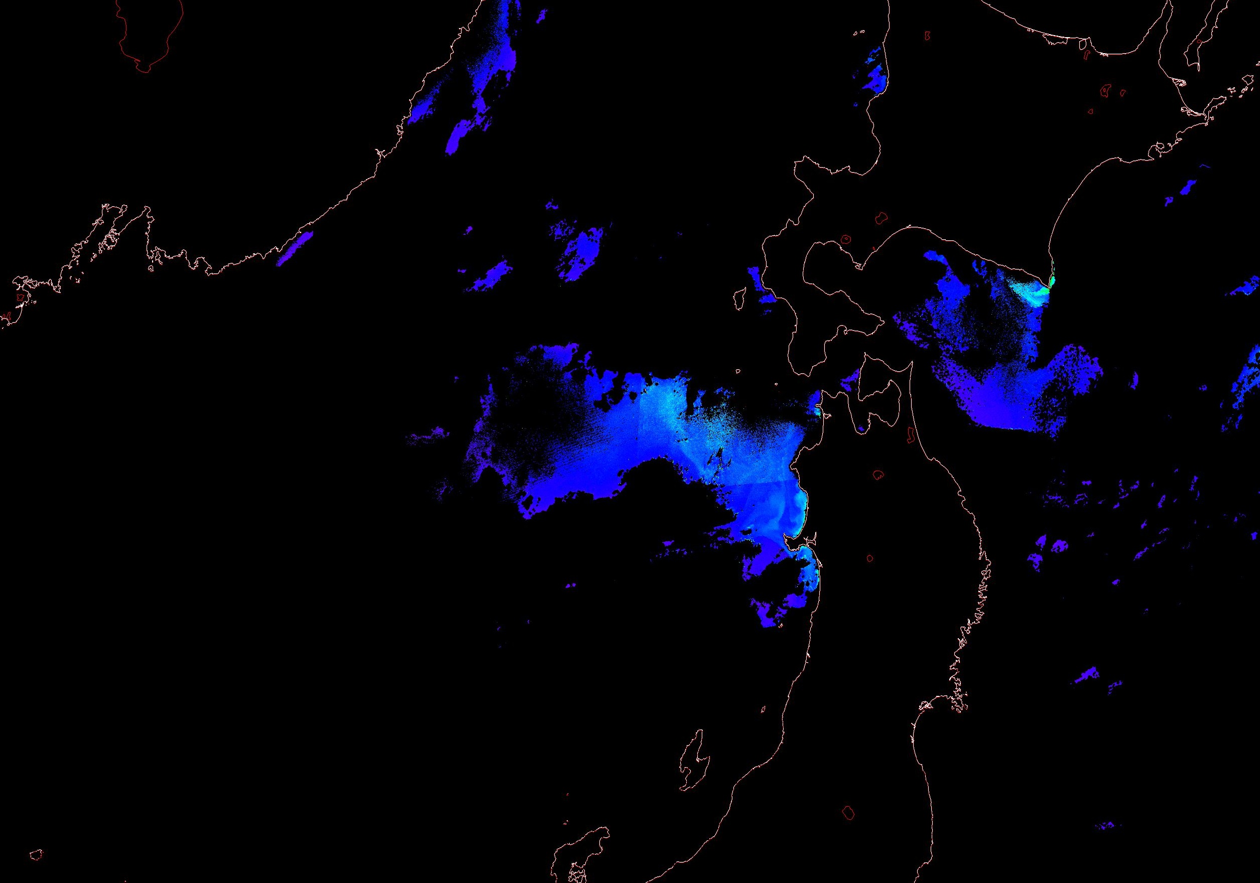 o 2013년 12월 19일 천리안 GOCI 위성영상입니다. [ GOCI : Geostationary Ocean Color Imager ] o 농도분포는 하단 범례를 참고하시기 바랍니다. o 검은색은 구름을 나타냅니다. o 그림을 클릭하시면 크게 보실 수 있습니다. o 천리안 GOCI 클로로필 a 동해지역. o 천리안 GOCI 클로로필 a 서해지역. o 천리안 GOCI 클로로필 a 남해지역. 천리안 GOCI 클로로필 a 둥중국해지역. o 천리안 GOCI 클로로필 a 대화퇴지역. ![]() 천리안 GOCI 영상은 한국해양과학기술원 해양위성센터에서 수신하였습니다. |