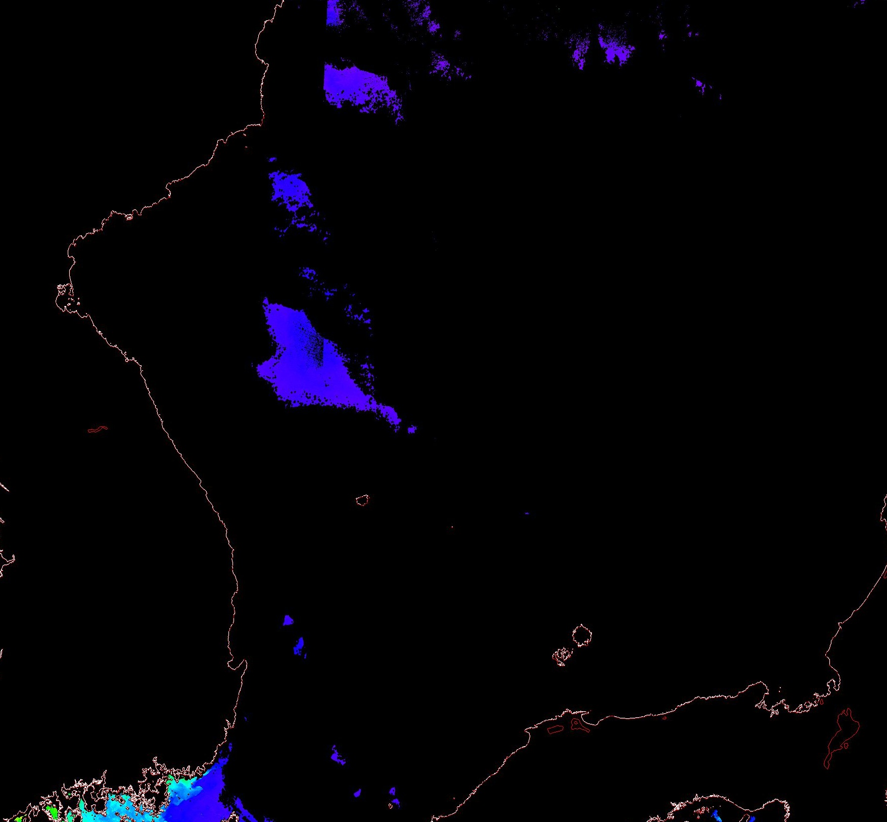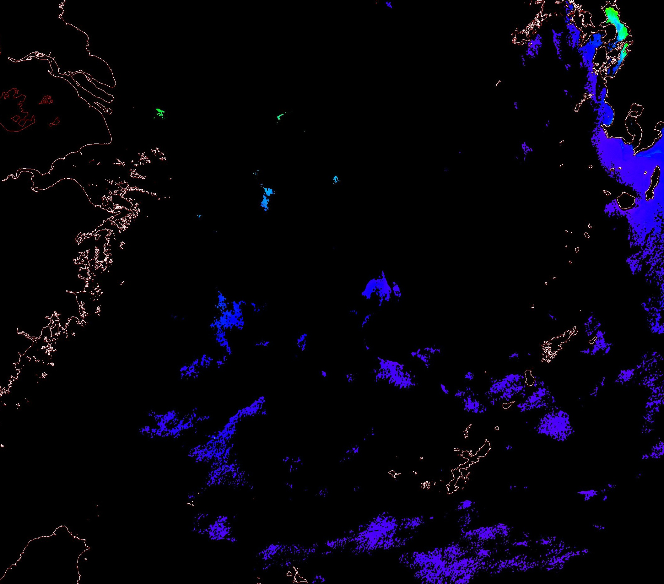 o 2013년 12월 22일 천리안 GOCI 위성영상입니다. [ GOCI : Geostationary Ocean Color Imager ] o 농도분포는 하단 범례를 참고하시기 바랍니다. o 검은색은 구름을 나타냅니다. o 그림을 클릭하시면 크게 보실 수 있습니다. o 천리안 GOCI 클로로필 a 동해지역. o 천리안 GOCI 클로로필 a 서해지역. o 천리안 GOCI 클로로필 a 남해지역. 천리안 GOCI 클로로필 a 둥중국해지역. o 천리안 GOCI 클로로필 a 대화퇴지역. ![]() 천리안 GOCI 영상은 한국해양과학기술원 해양위성센터에서 수신하였습니다. |