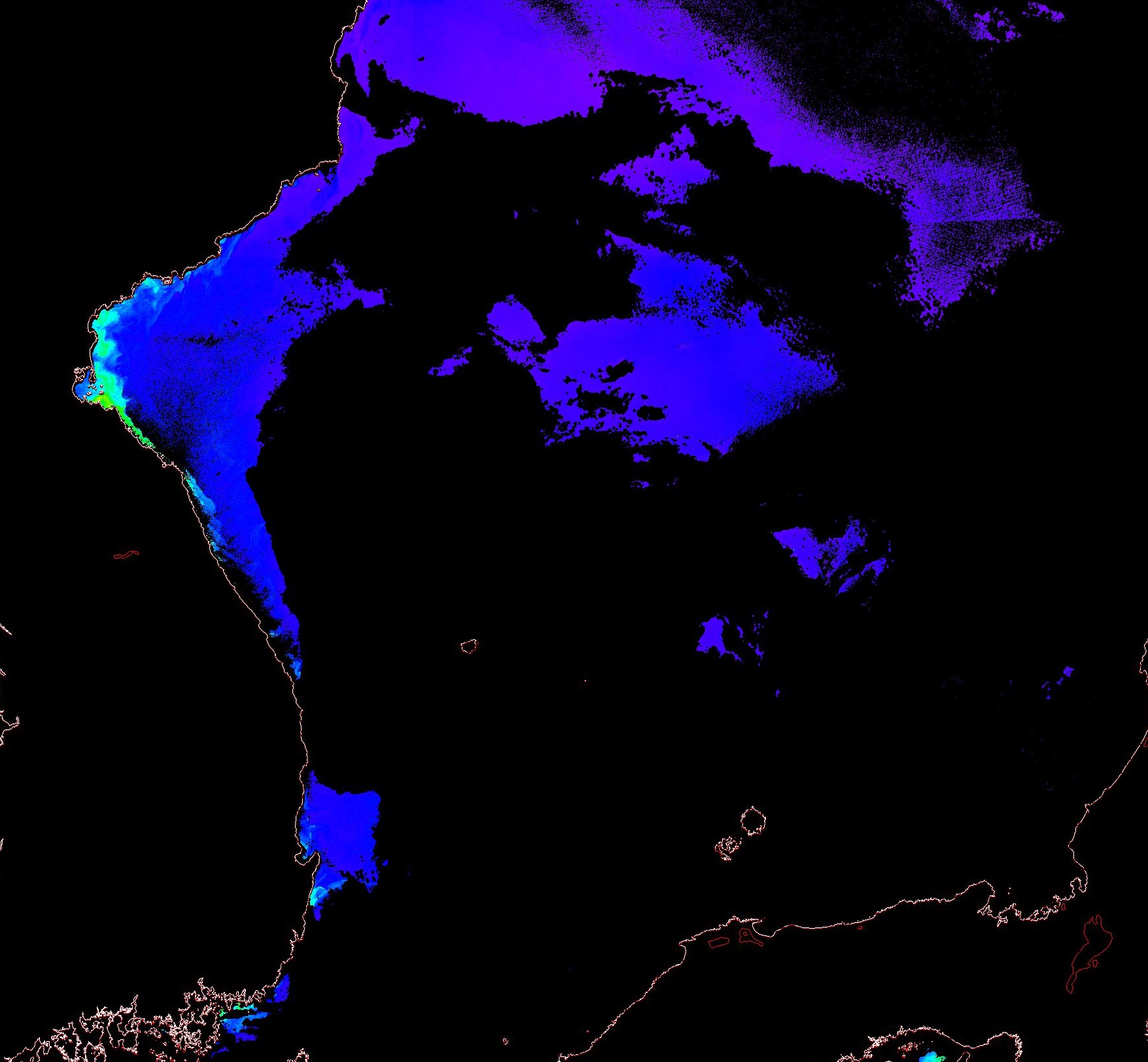 o 2013년 12월 23일 천리안 GOCI 위성영상입니다. [ GOCI : Geostationary Ocean Color Imager ] o 농도분포는 하단 범례를 참고하시기 바랍니다. o 검은색은 구름을 나타냅니다. o 그림을 클릭하시면 크게 보실 수 있습니다. o 천리안 GOCI 클로로필 a 동해지역. o 천리안 GOCI 클로로필 a 서해지역. o 천리안 GOCI 클로로필 a 남해지역. 천리안 GOCI 클로로필 a 둥중국해지역. o 천리안 GOCI 클로로필 a 대화퇴지역. ![]() 천리안 GOCI 영상은 한국해양과학기술원 해양위성센터에서 수신하였습니다. |