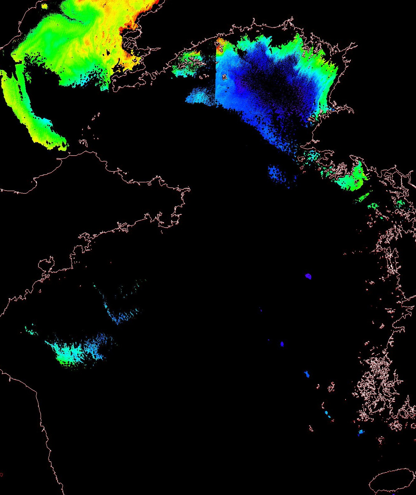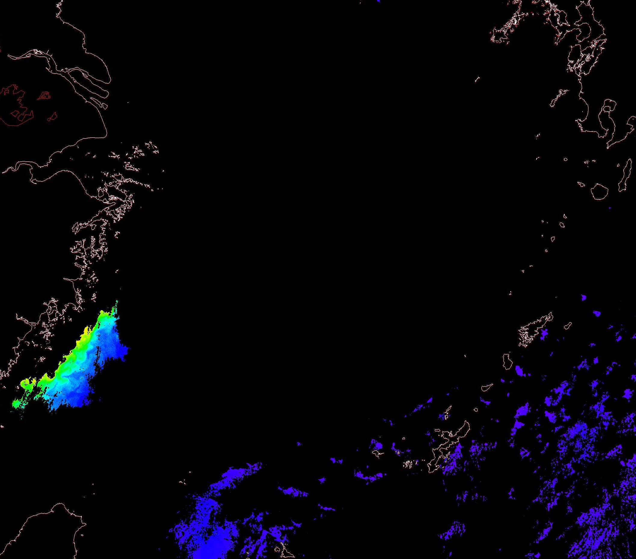 o 2013년 12월 28일 천리안 GOCI 위성영상입니다. [ GOCI : Geostationary Ocean Color Imager ] o 농도분포는 하단 범례를 참고하시기 바랍니다. o 검은색은 구름을 나타냅니다. o 그림을 클릭하시면 크게 보실 수 있습니다. o 천리안 GOCI 클로로필 a 동해지역. o 천리안 GOCI 클로로필 a 서해지역. o 천리안 GOCI 클로로필 a 남해지역. 천리안 GOCI 클로로필 a 둥중국해지역. o 천리안 GOCI 클로로필 a 대화퇴지역. ![]() 천리안 GOCI 영상은 한국해양과학기술원 해양위성센터에서 수신하였습니다. |