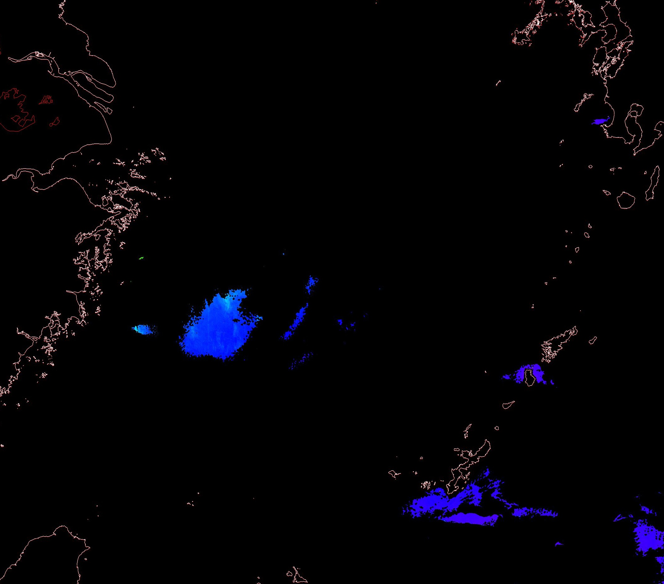 o 2013년 12월 30일 천리안 GOCI 위성영상입니다. [ GOCI : Geostationary Ocean Color Imager ] o 농도분포는 하단 범례를 참고하시기 바랍니다. o 검은색은 구름을 나타냅니다. o 그림을 클릭하시면 크게 보실 수 있습니다. o 천리안 GOCI 클로로필 a 동해지역. o 천리안 GOCI 클로로필 a 서해지역. o 천리안 GOCI 클로로필 a 남해지역. 천리안 GOCI 클로로필 a 둥중국해지역. o 천리안 GOCI 클로로필 a 대화퇴지역. ![]() 천리안 GOCI 영상은 한국해양과학기술원 해양위성센터에서 수신하였습니다. |