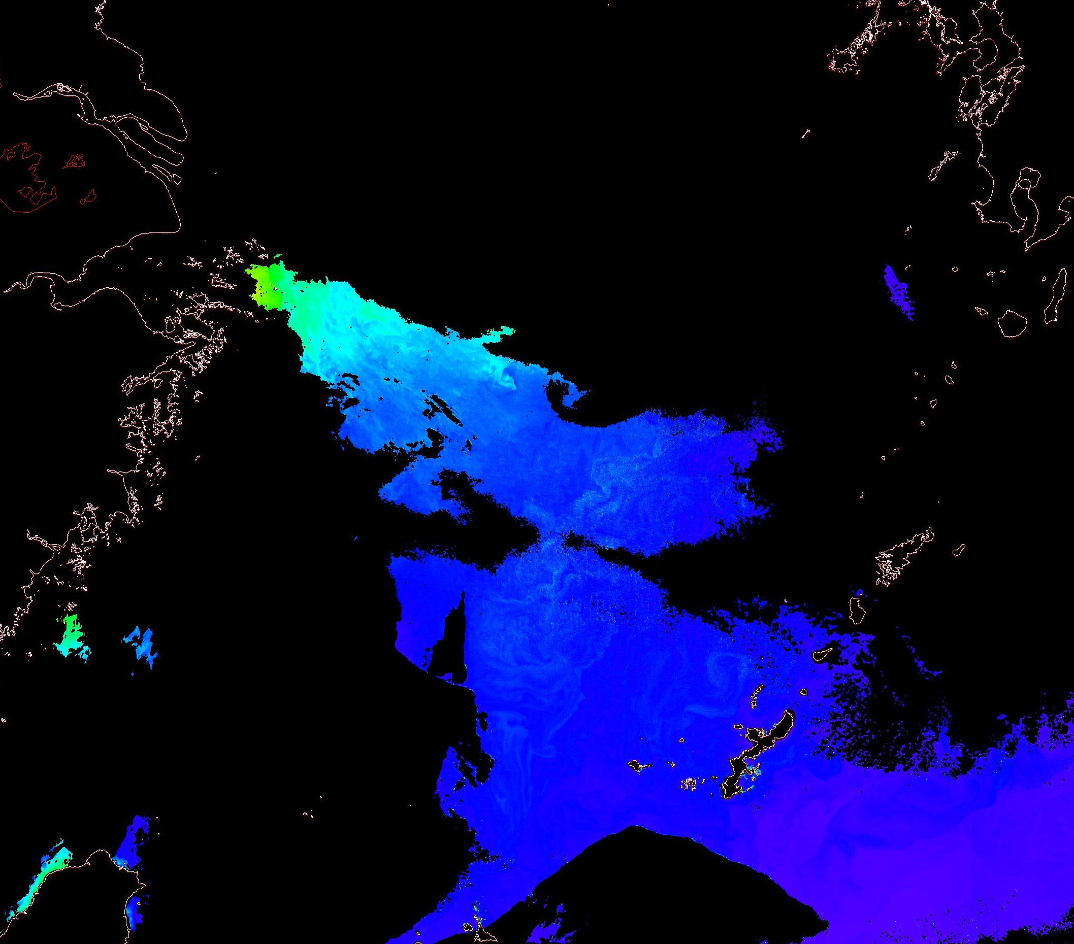 o 2014년 01월 02일 천리안 GOCI 위성영상입니다. [ GOCI : Geostationary Ocean Color Imager ] o 농도분포는 하단 범례를 참고하시기 바랍니다. o 검은색은 구름을 나타냅니다. o 그림을 클릭하시면 크게 보실 수 있습니다. o 천리안 GOCI 클로로필 a 동해지역. o 천리안 GOCI 클로로필 a 서해지역. o 천리안 GOCI 클로로필 a 남해지역. 천리안 GOCI 클로로필 a 둥중국해지역. o 천리안 GOCI 클로로필 a 대화퇴지역. ![]() 천리안 GOCI 영상은 한국해양과학기술원 해양위성센터에서 수신하였습니다. |
