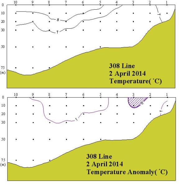 ◦ 2014년 4월 2일 국립수산과학원 서해수산연구소에서 조사한 308선(대천