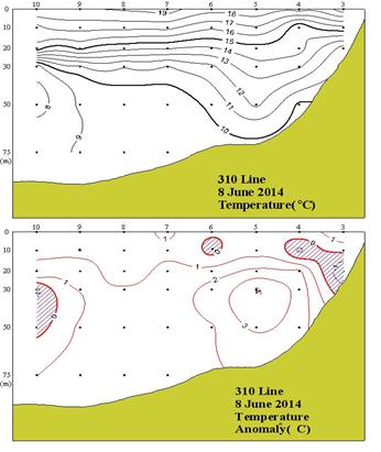 평년에 비하여 일부해역을 제외한 대부분의 관측해역에서 13