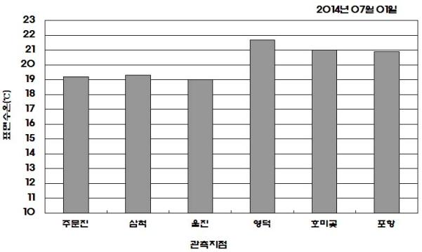 <삼척, 울진,영덕연안 주의보 해제> ◦ ◦ 2014년 07월 01일 오전 10시에 관측된 현장 표면수온은 주문진 19.2℃, 삼척 19.3℃, 울진 19.0℃, 영덕 21.7℃, 호미곶 21.0℃, 포항 20.9℃의 수온을 나타내고 있습니다. ◦ 냉수대 소멸시 수온 급상승에 따라 양식생물이 피해를 입을 수 있으니 주의하여 주시기 바랍니다. =$row['content']?> =$row['content']?> =$row['content']?> |