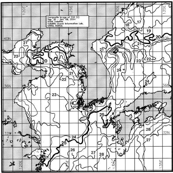 ◦ 금주(2014. 09. 30~2014. 10. 06)의 한국근해 표면수온은 대화퇴 근해 22~23도, 울릉도-독도 근해 23~24도, 대마도 근해 24~25도, 제주도 근해 23~24도, 이어도 근해 23~24도, 가거초 근해 23~24도, 어청도 근해 21~22도, 백령도 근해 17∼18도로 나타납니다. ◦ 「평년에 비해」대화퇴 근해 2.6도 높게, 울릉도-독도 근해 1.7도 높게, 대마도 근해 0.6도 높게, 제주도 근해 비슷하게, 이어도 근해 0.5도 낮게, 가거초 근해 2.5도 높게, 어청도 근해 1.1도 높게 나타납니다. ◦「전년에 비해」대화퇴 근해 3도 높게, 울릉도-독도 근해 0.5도 높게, 대마도 근해 1도 낮게, 제주도 근해 2도 낮게, 이어도 근해 1도 낮게, 가거초 근해 1도 높게, 어청도 근해 0.5도 높게, 백령도 근해 1.5도 낮게 나타납니다. ◦ 수온 전선대는 우리나라 제주해협에서 대한해협까지 24도를 중심으로 형성됩니다. =$row['content']?> =$row['content']?> =$row['content']?> |