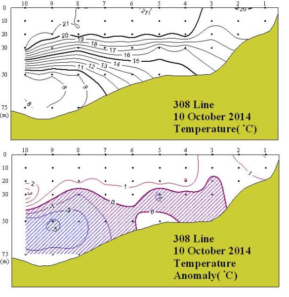 ◦ 2014년 10월 11일 국립수산과학원 서해수산연구소에서 조사한 308선(대