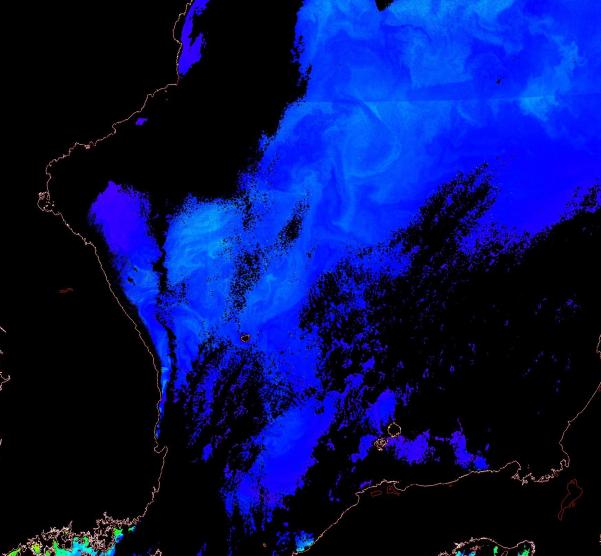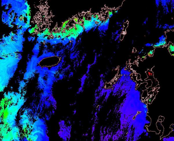 o 2014년 10월 23일 천리안 GOCI 위성영상입니다. [ GOCI : Geostationary Ocean Color Imager ] o 농도분포는 하단 범례를 참고하시기 바랍니다. o 검은색은 구름을 나타냅니다. o 그림을 클릭하시면 크게 보실 수 있습니다. o 천리안 GOCI 클로로필 a 동해지역. o 천리안 GOCI 클로로필 a 서해지역. o 천리안 GOCI 클로로필 a 남해지역. o 천리안 GOCI 클로로필 a 동중국해지역. o 천리안 GOCI 클로로필 a 대화퇴지역. |
