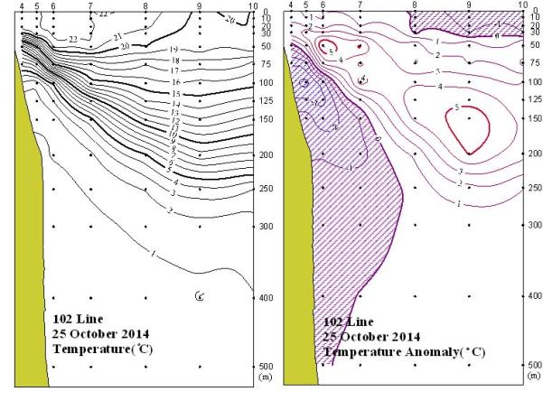 ◦ 2014년 10월 25일 국립수산과학원 동해수산연구소에서 조사한 102선(포