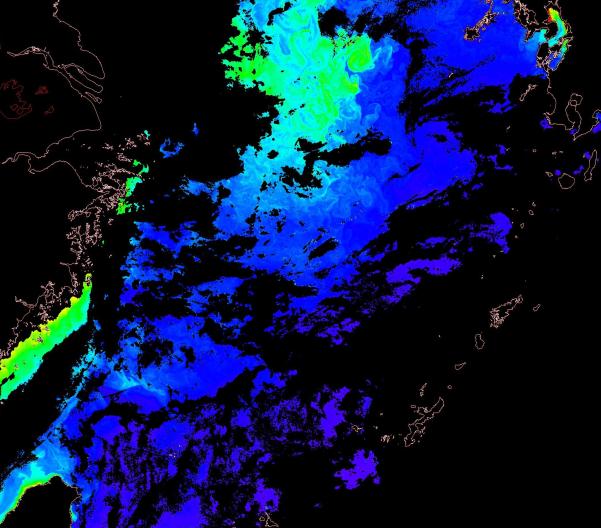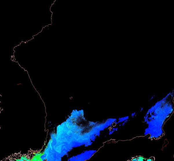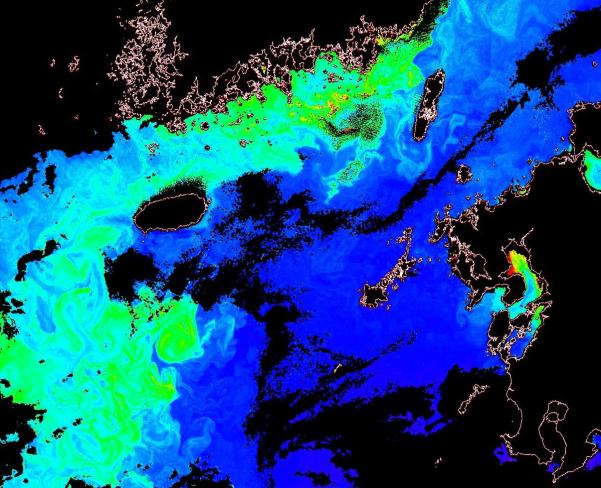 o 천리안 GOCI 클로로필 a 대화퇴지역. |