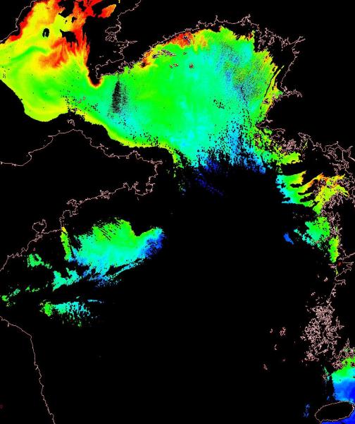 o 2014년 12월 25일 천리안 GOCI 위성영상입니다. [ GOCI : Geostationary Ocean Color Imager ] o 농도분포는 하단 범례를 참고하시기 바랍니다. o 검은색은 구름을 나타냅니다. o 그림을 클릭하시면 크게 보실 수 있습니다. o 천리안 GOCI 클로로필 a 동해지역. o 천리안 GOCI 클로로필 a 서해지역. o 천리안 GOCI 클로로필 a 남해지역. o 천리안 GOCI 클로로필 a 동중국해지역. o 천리안 GOCI 클로로필 a 대화퇴지역. |