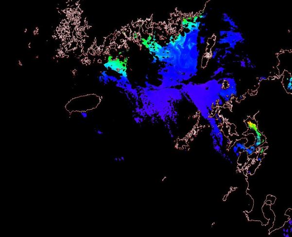o 2015년 1월 7일 천리안 GOCI 위성영상입니다. [ GOCI : Geostationary Ocean Color Imager ] o 농도분포는 하단 범례를 참고하시기 바랍니다. o 검은색은 구름을 나타냅니다. o 그림을 클릭하시면 크게 보실 수 있습니다. o 천리안 GOCI 클로로필 a 동해지역. o 천리안 GOCI 클로로필 a 서해지역. o 천리안 GOCI 클로로필 a 서해지역. o 천리안 GOCI 클로로필 a 동중국해지역. o 천리안 GOCI 클로로필 a 대화퇴지역. |