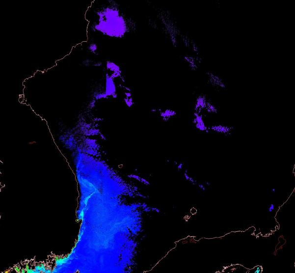 o 2015년 1월 10일 천리안 GOCI 위성영상입니다. [ GOCI : Geostationary Ocean Color Imager ] o 농도분포는 하단 범례를 참고하시기 바랍니다. o 검은색은 구름을 나타냅니다. o 그림을 클릭하시면 크게 보실 수 있습니다. o 천리안 GOCI 클로로필 a 동해지역. o 천리안 GOCI 클로로필 a 서해지역. o 천리안 GOCI 클로로필 a 남해지역. o 천리안 GOCI 클로로필 a 동중국해지역. o 천리안 GOCI 클로로필 a 대화퇴지역. |