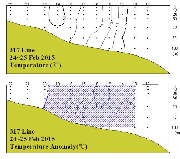 =$row[content]?> ◦ 2015년 2월 24∼25일 국립수산과학원 수산해양종합정보과에서 조사한 동중국해 북부해역(317선)의 수온 수직분포도와 평년편차도입니다. ◦ 수온이 연직적으로 균일하게 분포하고 있고, 대상 해역의 동쪽으로 갈수록 수온이 높아지는 분포를 보이고 있다. ◦ 평년에 비하여 정점 20∼22 사이에서 1℃내외의 고온현상을 나타냈으며, 나머지 대부분의 해역에서는 1∼2℃ 범위의 저온현상을 나타내었습니다. =$row['content']?>=$row[content]?>=$row['content']?> =$row[content]?>=$row['content']?> =$row['content']?> =$row['content']?> =$row['content']?> |