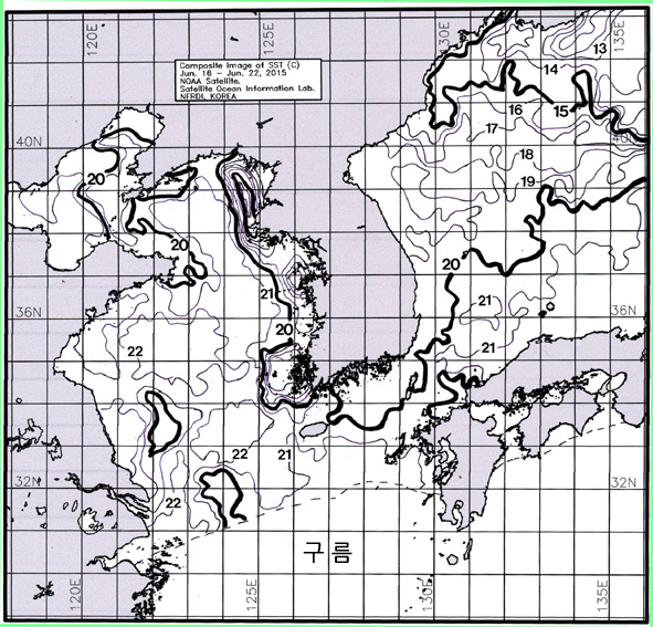 ◦ 금주(2015. 06. 16~2015. 06. 22)의 한국근해 표면수온은 대화퇴 근해 19~20도, 울릉도-독도 근해 19~21도, 대마도 근해 19~21도, 제주도 근해 20~21도, 이어도 근해 20~22도, 가거초 근해 20~22도, 어청도 근해 19~20도, 백령도 근해 15∼17도로 나타납니다. ◦ 「평년에 비해」대화퇴 근해 1.8도 높게, 울릉도-독도 근해 비슷하게, 대마도 근해 1도 낮게, 제주도 근해 비슷하게, 이어도 근해 비슷하게, 가거초 근해 1.5도 높게, 어청도 근해 1도 높게 나타납니다. ◦「전년에 비해」대화퇴 근해 3도 높게, 울릉도-독도 근해 비슷하게, 대마도 근해 1도 낮게, 제주도 근해 비슷하게, 이어도 근해 0.5도 높게, 가거초 근해 0.5도 높게, 어청도 근해 1도 낮게, 백령도 근해 비슷하게 나타납니다. ◦ 수온 전선대는 우리나라 제주해협에서 대한해협까지 20도를 중심으로 형성됩니다. =$row['content']?> =$row['content']?> =$row['content']?> |