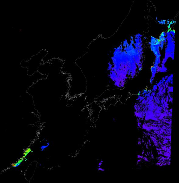o 2015년 1월 20일 천리안 GOCI 클로로필 a 위성영상입니다.