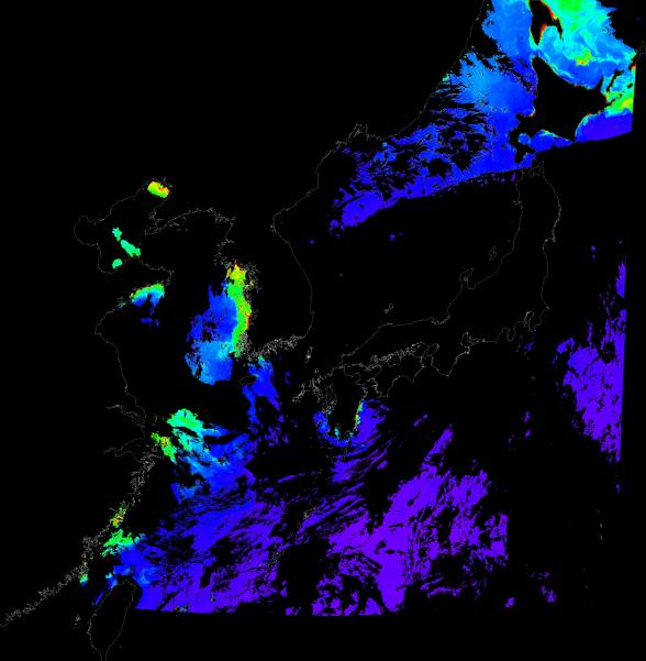 o 2015년 7월 17일 천리안 GOCI 클로로필 a 위성영상입니다.