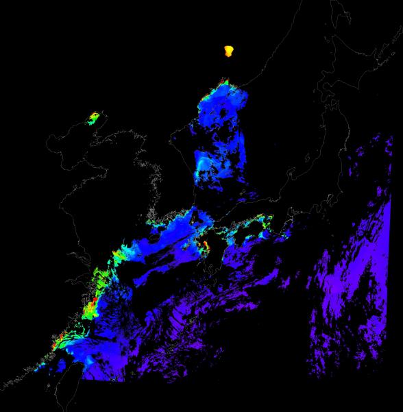 o 2015년 7월 18일 천리안 GOCI 클로로필 a 위성영상입니다.