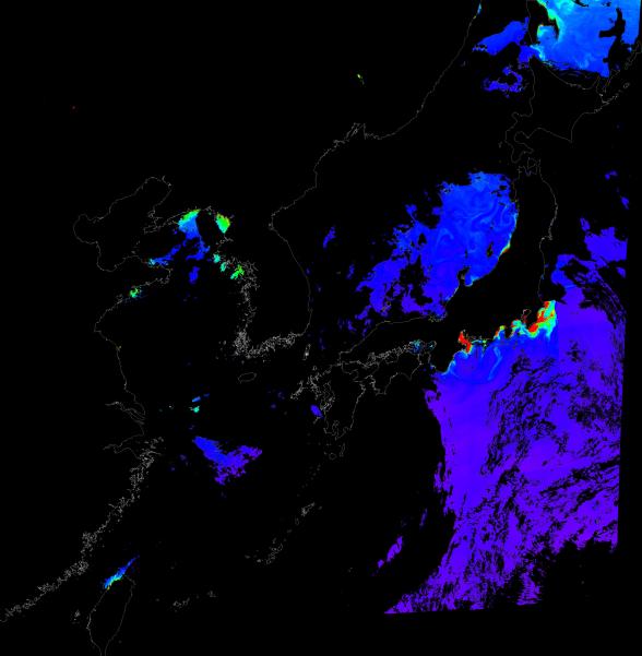 o 2015년 7월 21일 천리안 GOCI 클로로필 a 위성영상입니다.