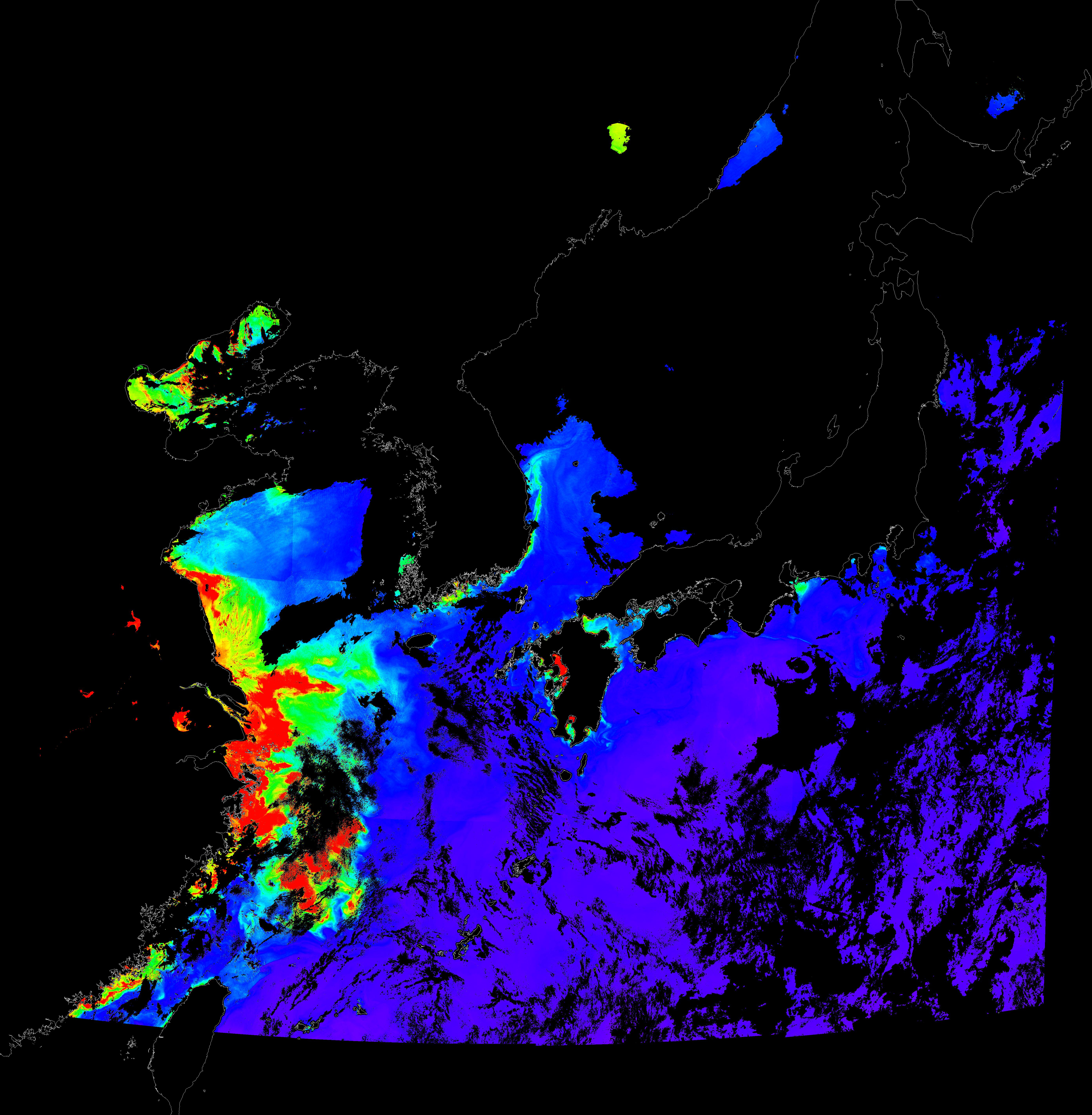o 2015년 7월 30일 천리안 GOCI 클로로필 a 위성영상입니다.