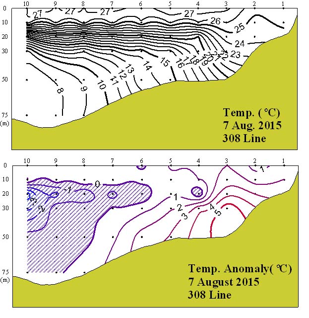 ◦ 2015년 8월 7일 국립수산과학원 서해수산연구소에서 조사한 308선(대