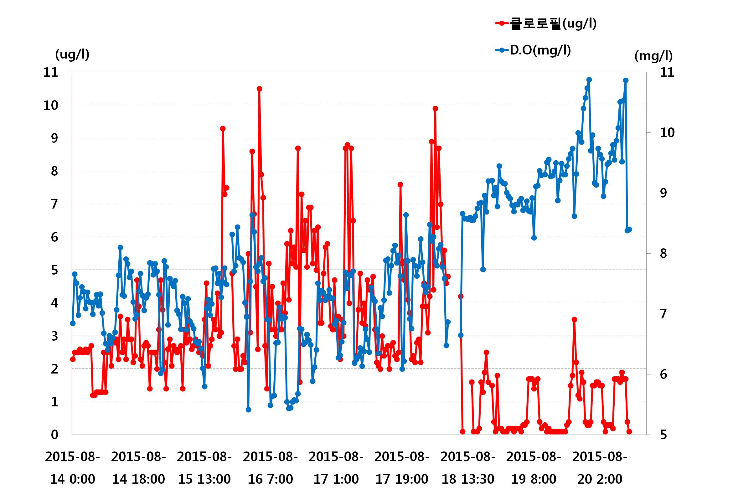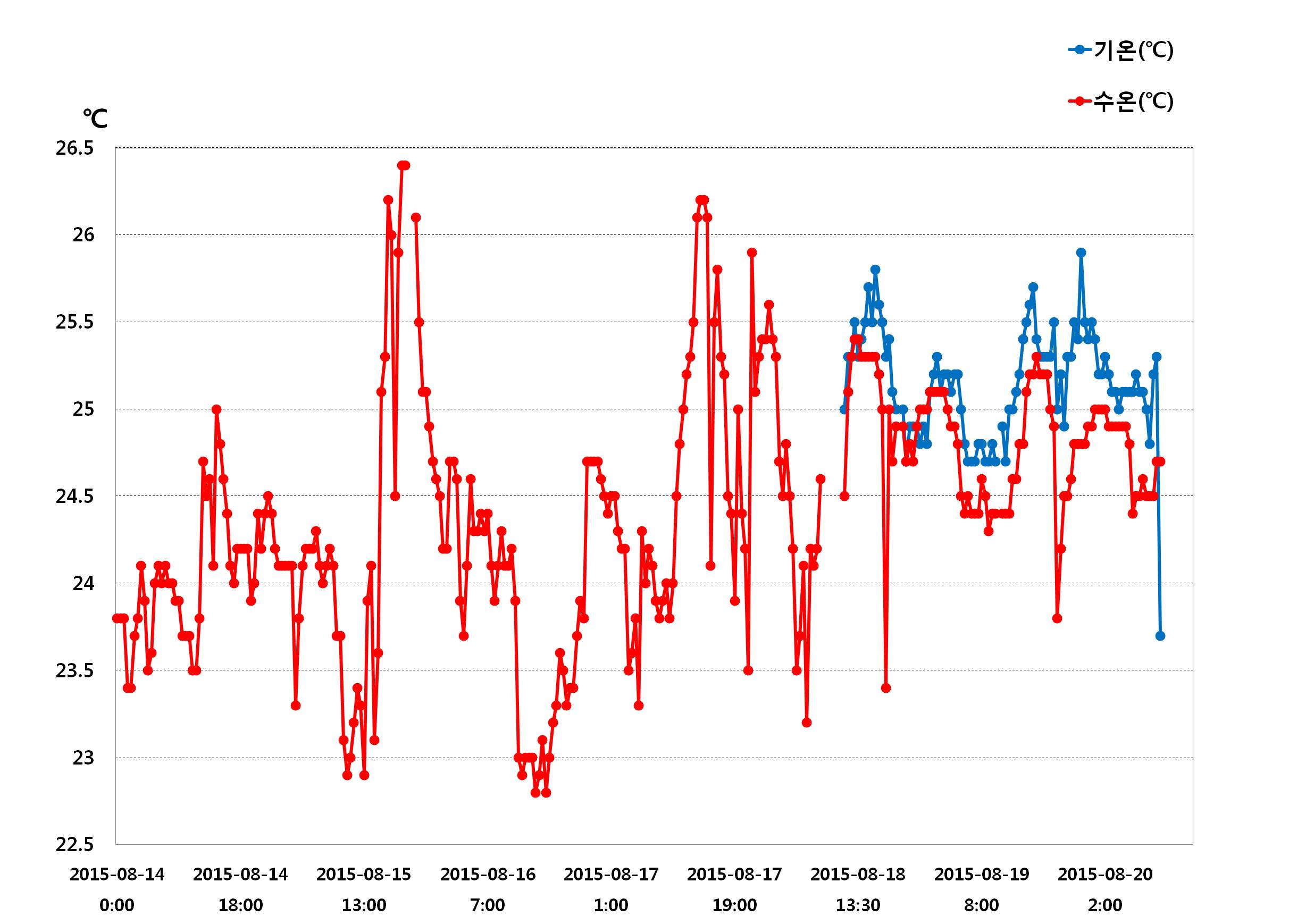 ◦ 아래의 그림은 8월 14일∼8월 20일까지의 기온, 수온, 용존산소, 클로로필-a의 일별 변동으로 24시간 변동 범위의 수온 22.8∼26.4℃, 기온 23.7∼25.9℃의 범위였으며, 클로로필-a는 0.1∼20.6(㎍/ℓ), 용존산소 7.0∼11.1(㎎/ℓ)의 범위를 나타나고 있습니다. ◦ 적조뿐만 아니라 해양기상관측부이 결과를 양식장 관리에 활용하여 주시기를 바랍니다. =$row['content']?> =$row['content']?> =$row['content']?> |
