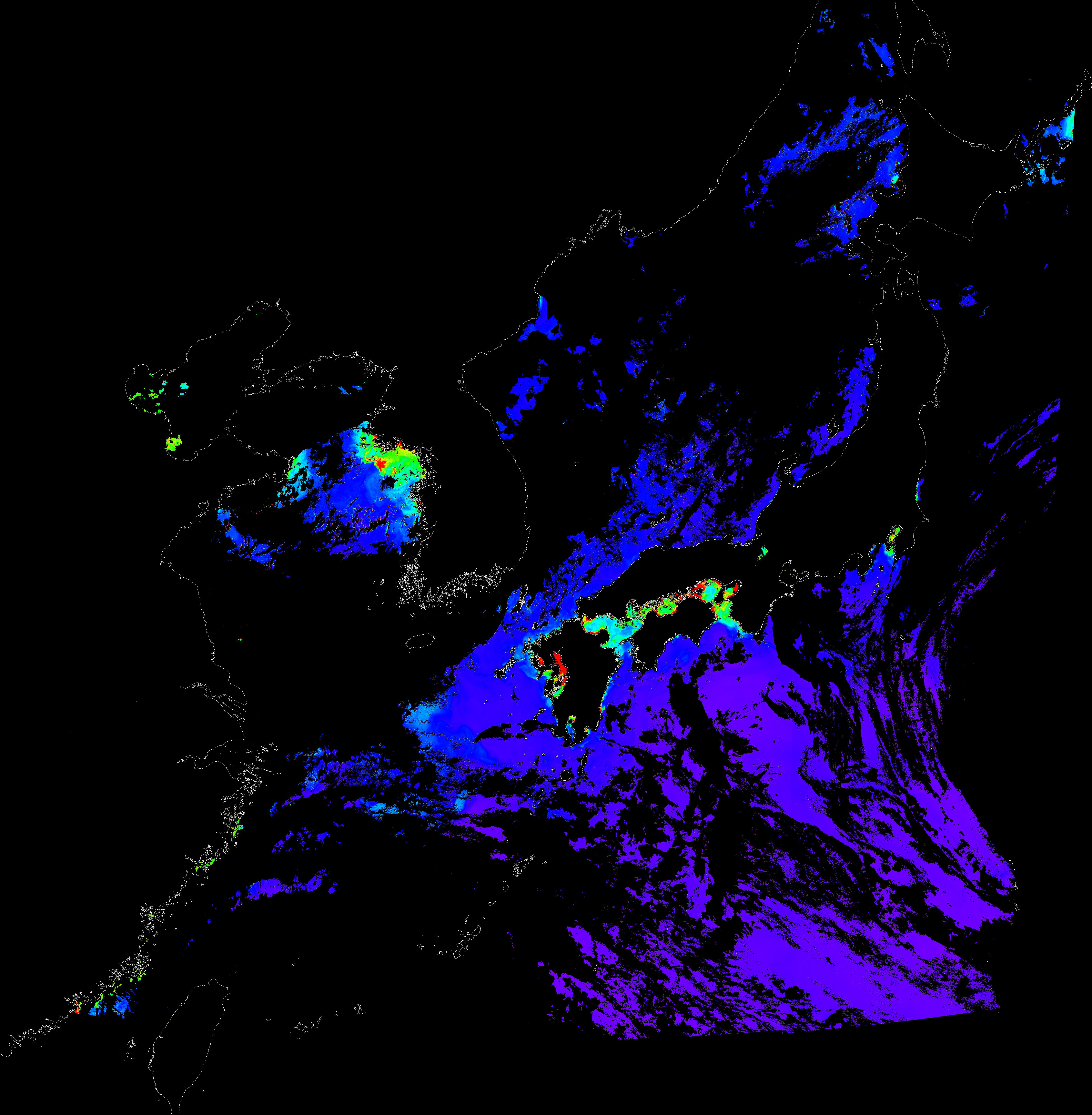 o 2015년 8월 23일 천리안 GOCI 클로로필 a 위성영상입니다.
