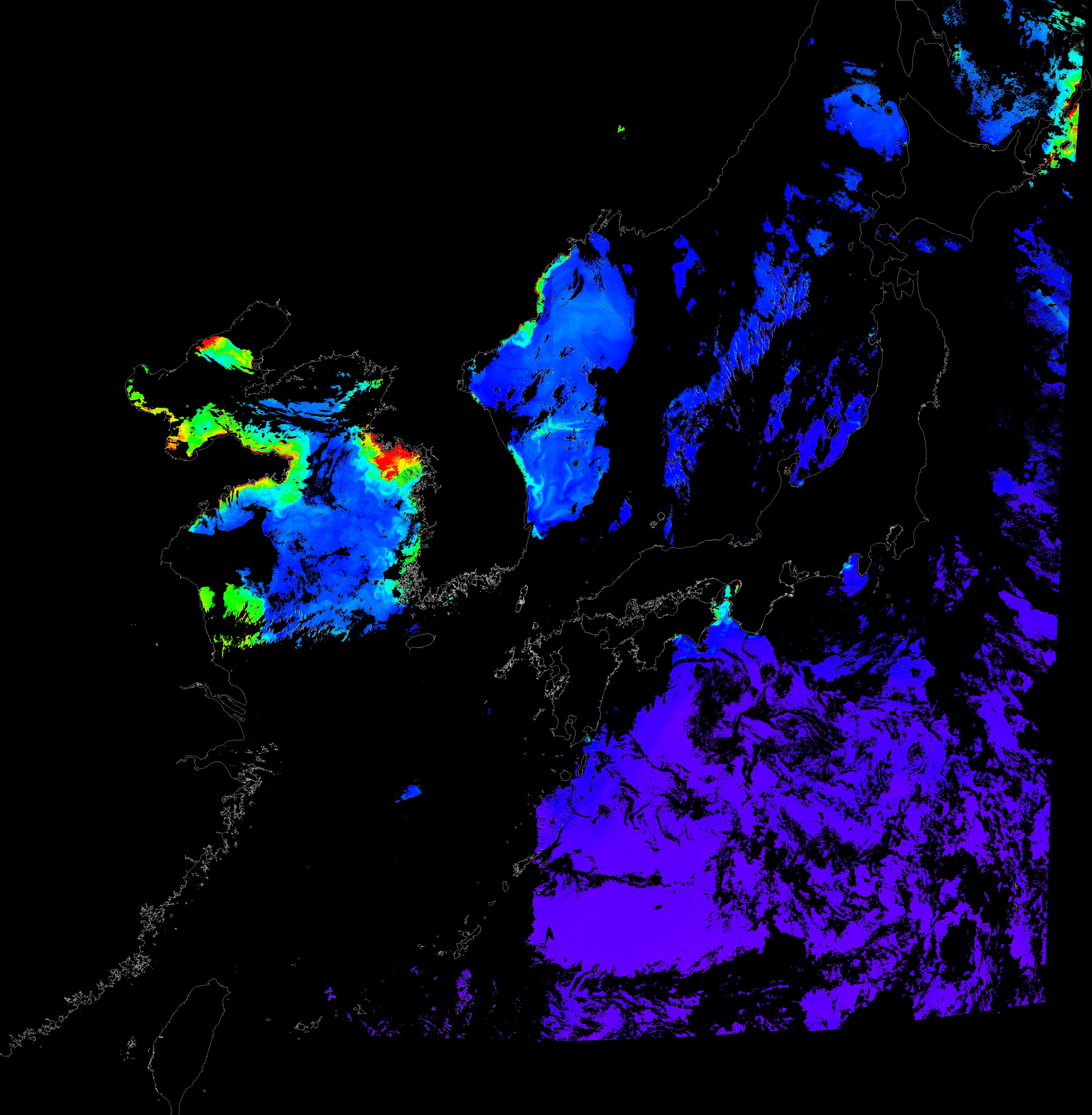 o 2015년 8월 28일 천리안 GOCI 클로로필 a 위성영상입니다.