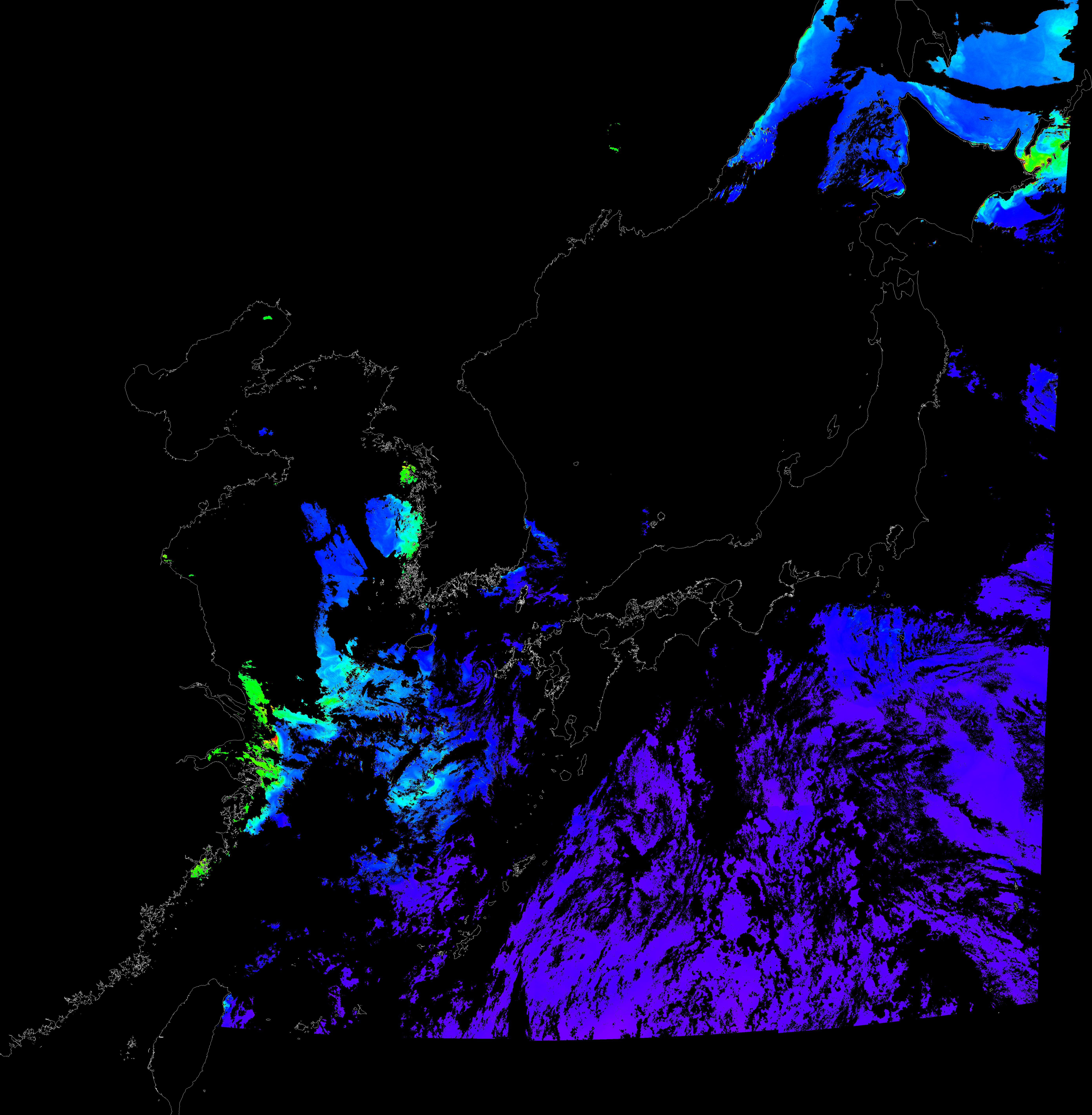 o 2015년 9월 1일 천리안 GOCI 클로로필 a 위성영상입니다.
