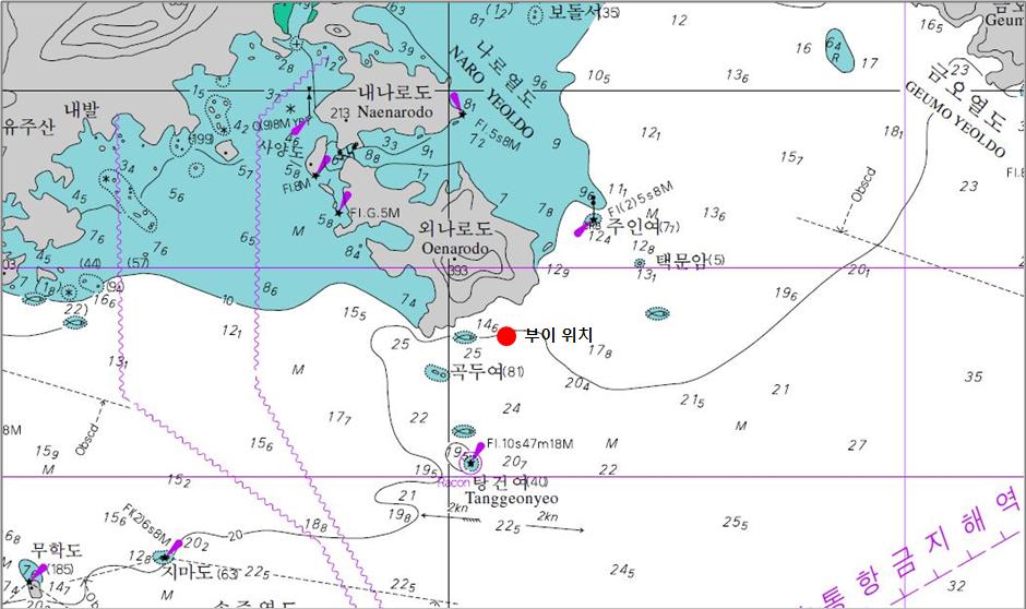 ◦ 국립수산과학원에서는 유해적조에 의한 피해 최소화를 위하여 전남 고흥군 외나로도 남방에 해양기상관측부이를 운영하고 있으며, 관측부이에는 기온, 기압, 풍향/풍속 등 기상요소와 수온, 염분, 용존산소, 클로로필, 유향/유속 등 해양요소를 동시에 측정하고 있습니다.