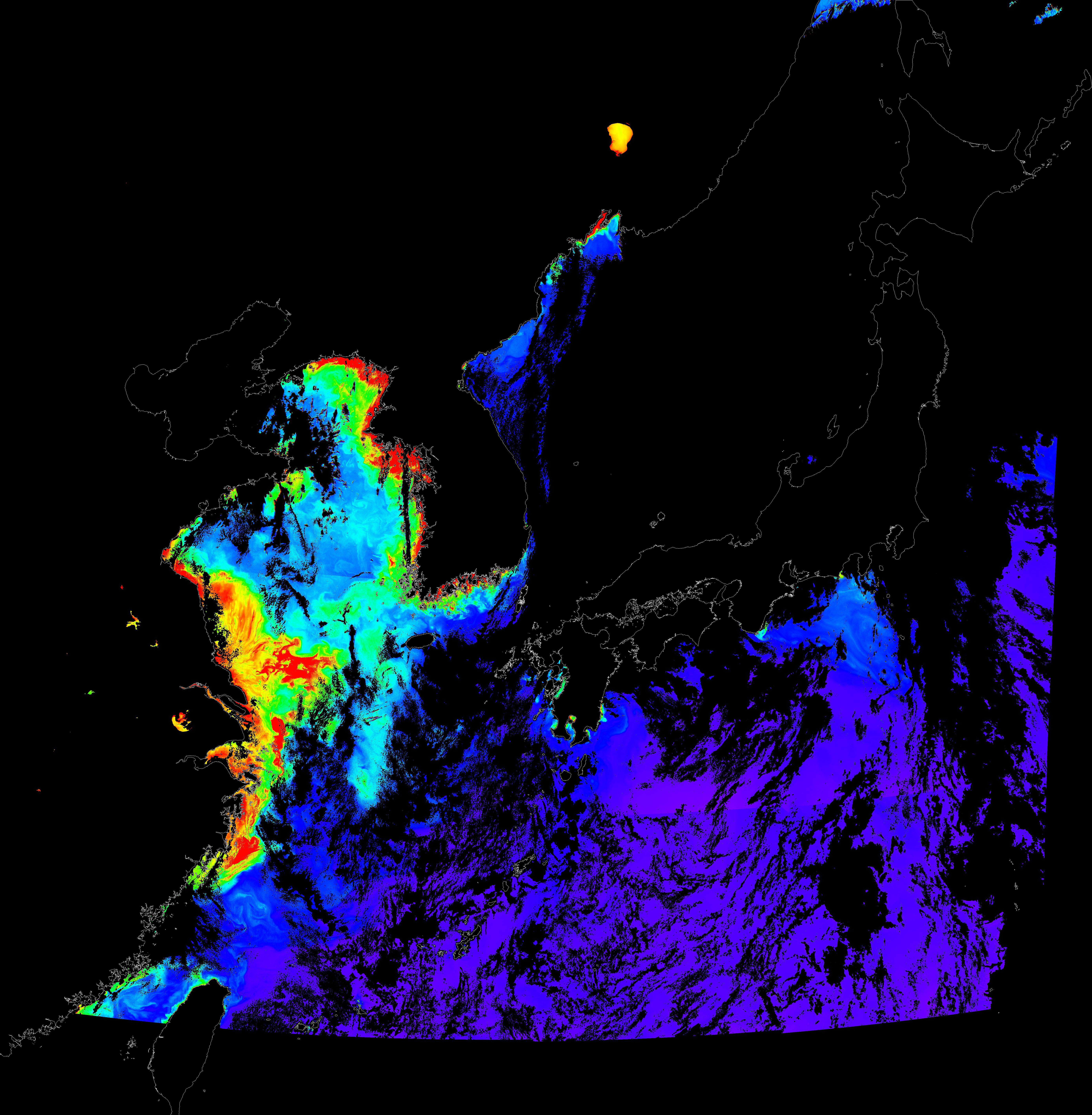 o 2015년 9월 9일 천리안 GOCI 클로로필 a 위성영상입니다.