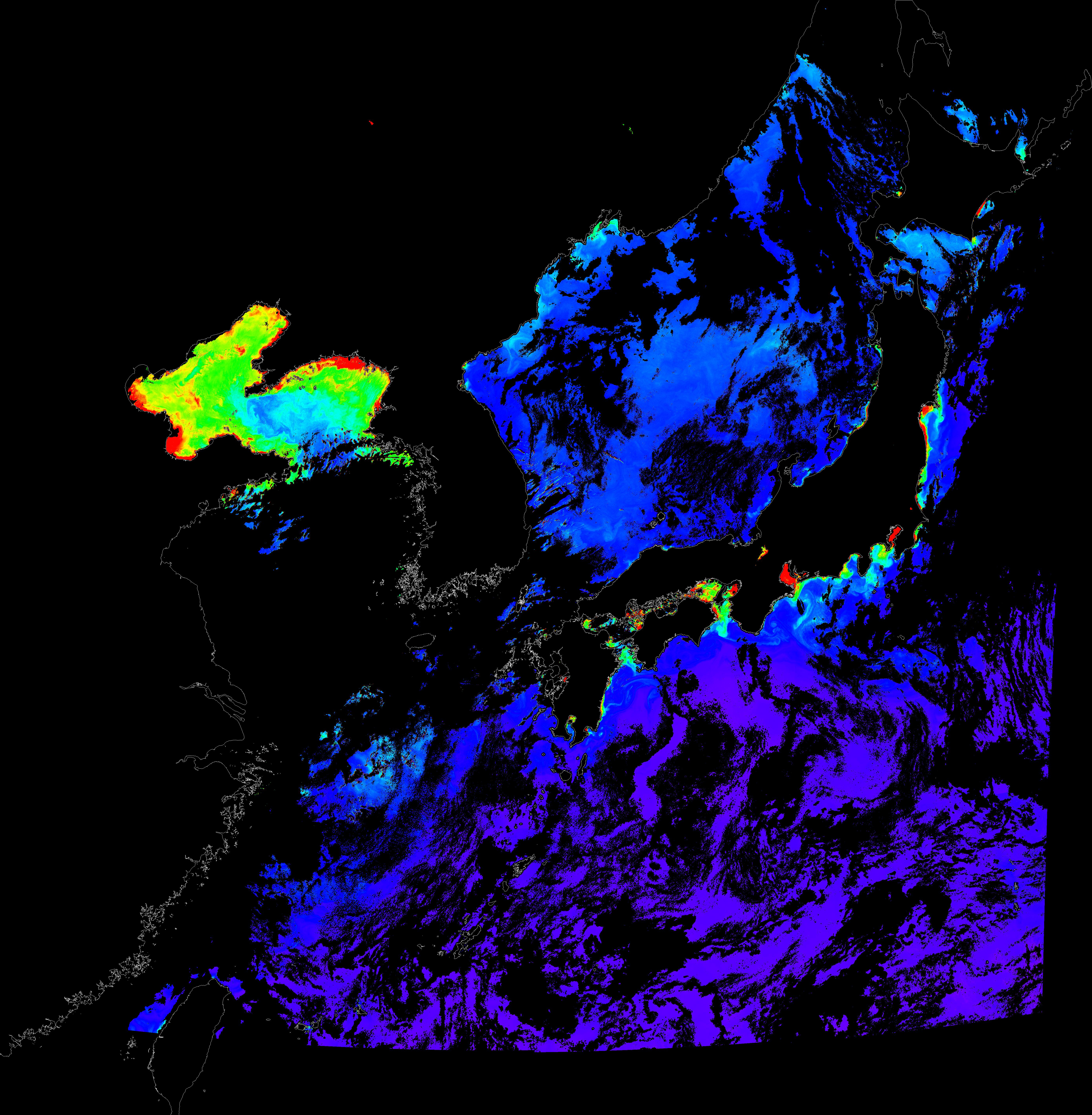 o 2015년 9월 20일 천리안 GOCI 클로로필 a 위성영상입니다.