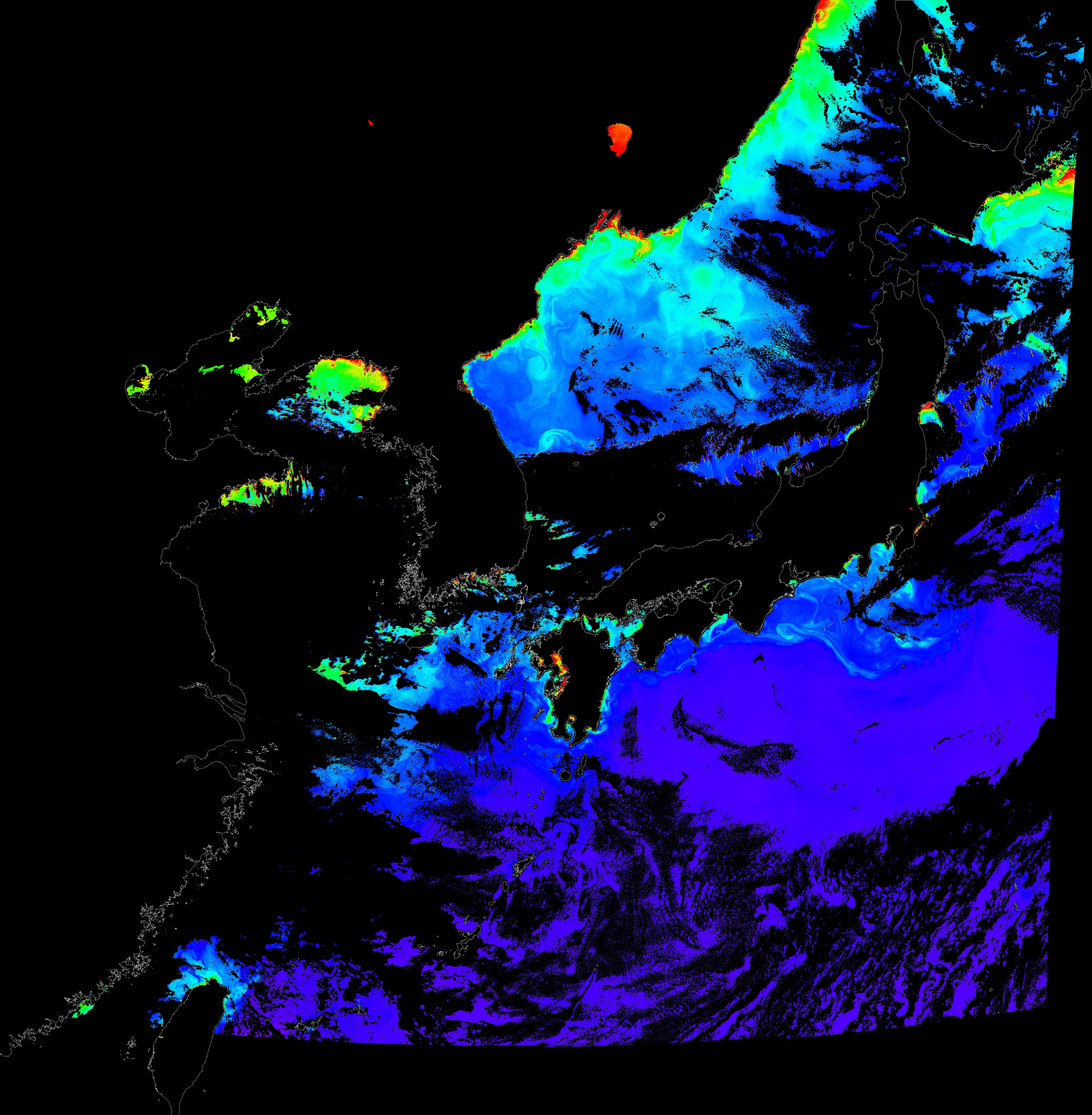 o 2015년 10월 4일 천리안 GOCI 클로로필 a 위성영상입니다.