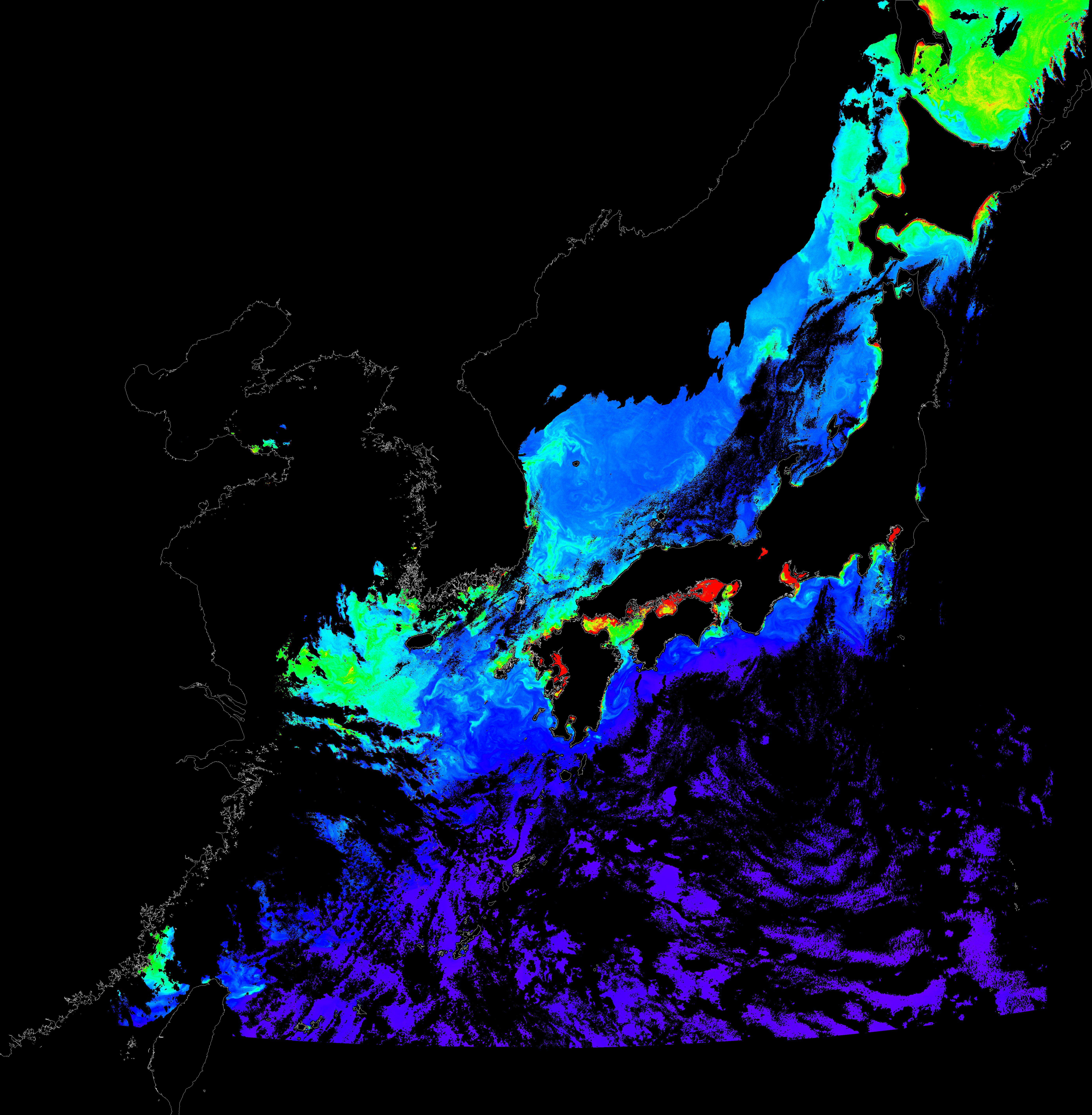 o 2015년 10월 7일 천리안 GOCI 클로로필 a 위성영상입니다.