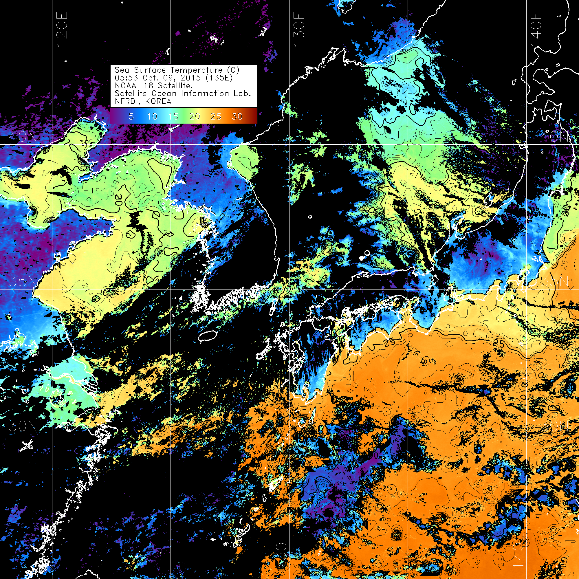 o 2015년 10월 09일 NOAA 위성영상입니다.
