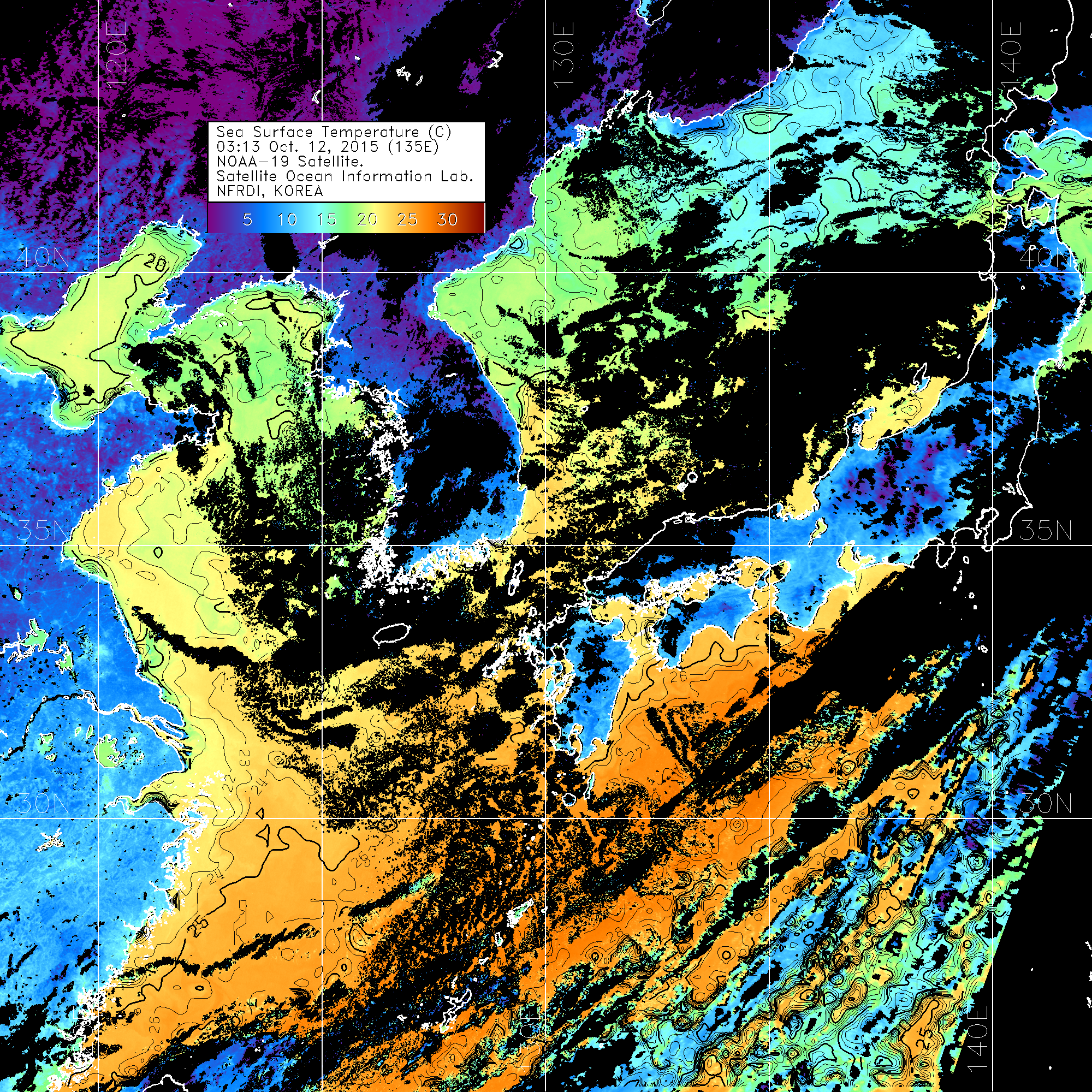 o 영상 시간 및 수온분포는 범례를 참고하시기 바랍니다.