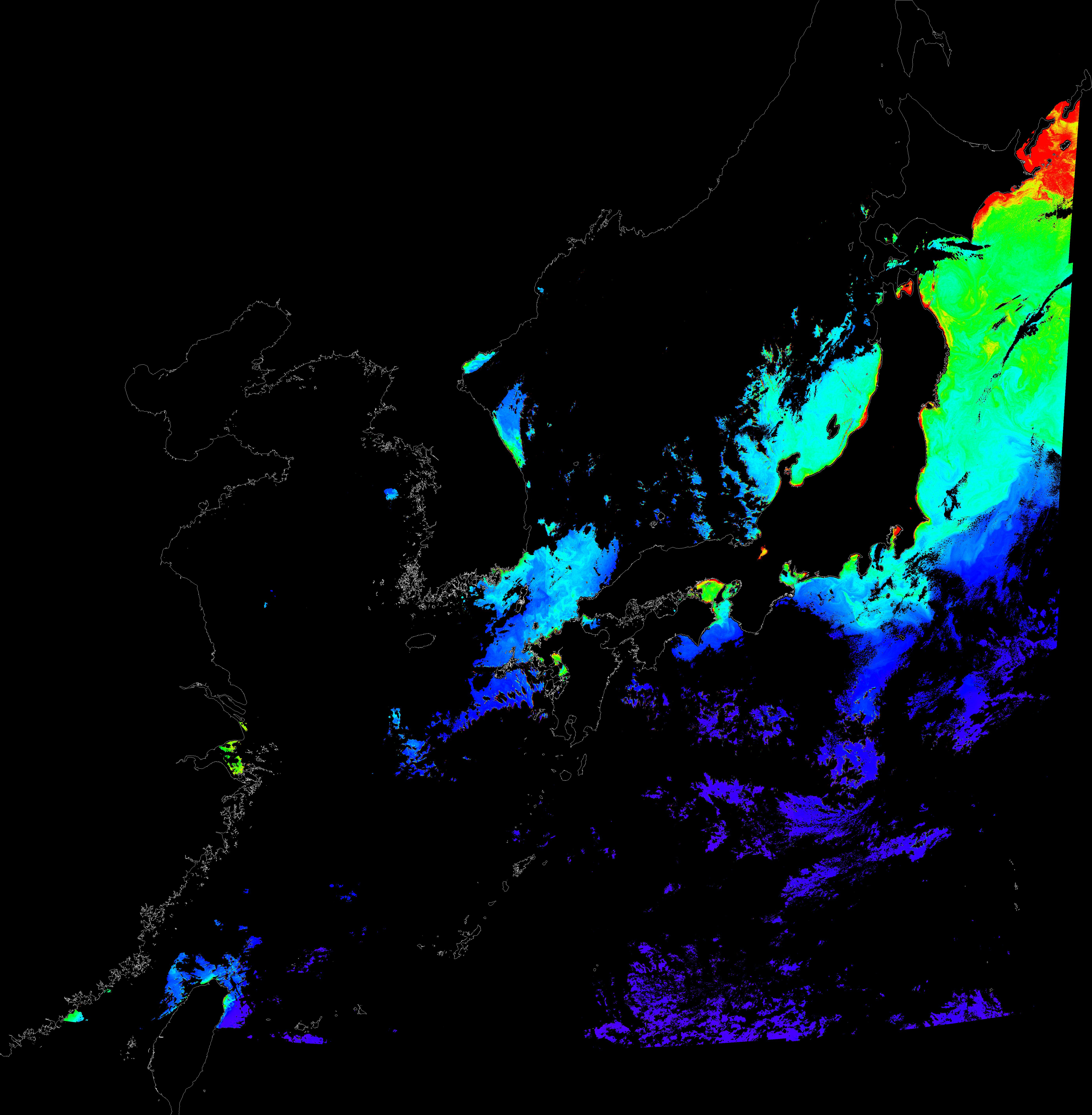o 2015년 11월 4일 천리안 GOCI 클로로필 a 위성영상입니다.