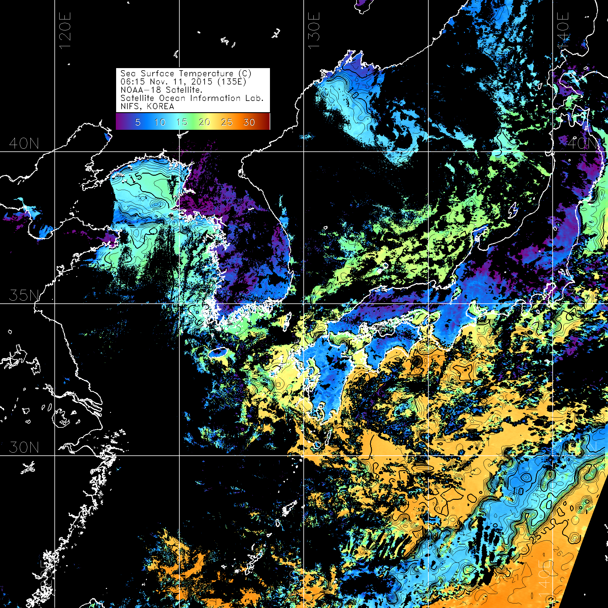 o 2015년 11월 11일 NOAA 위성영상입니다.