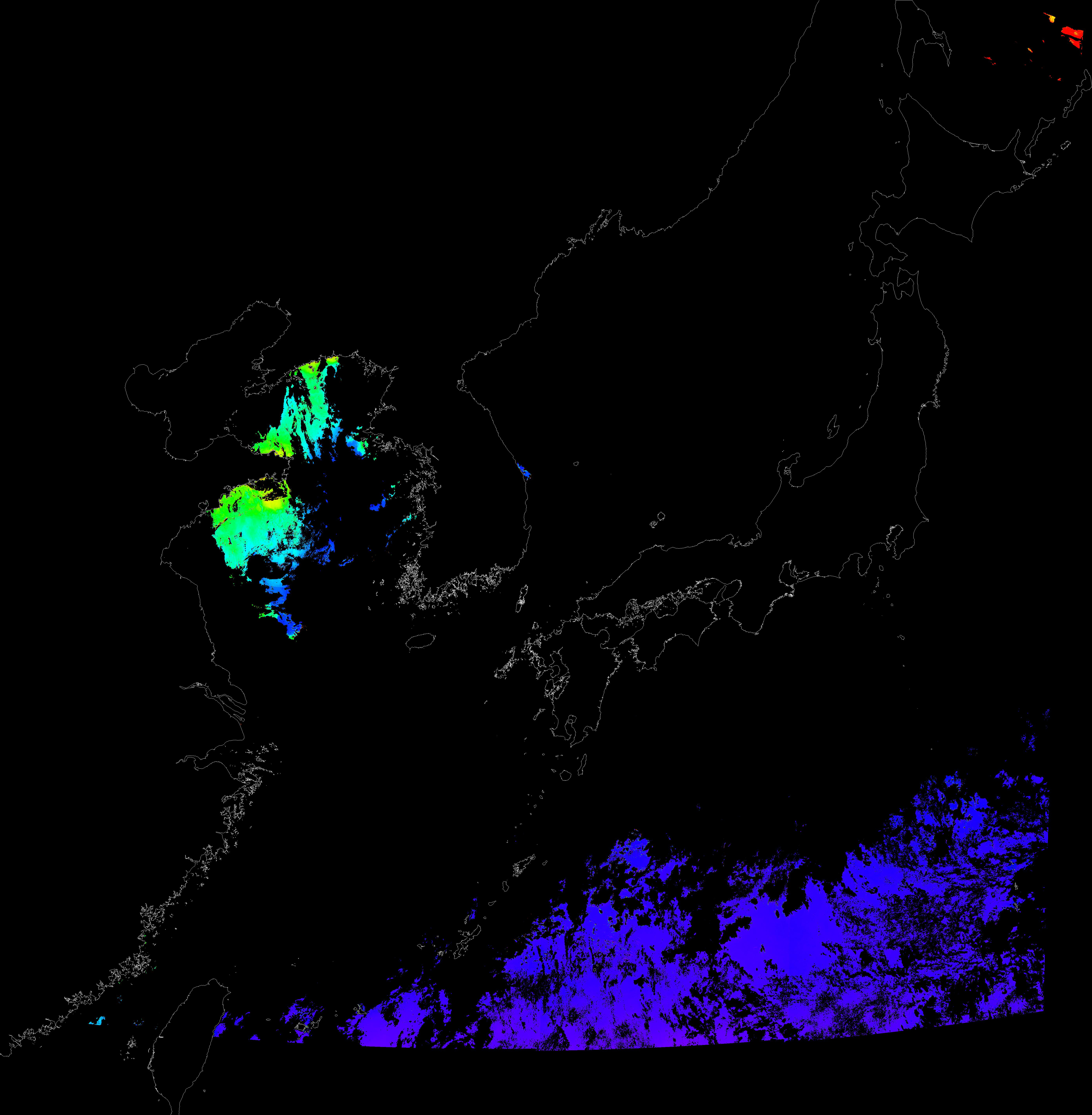 o 2015년 11월 14일 천리안 GOCI 클로로필 a 위성영상입니다.