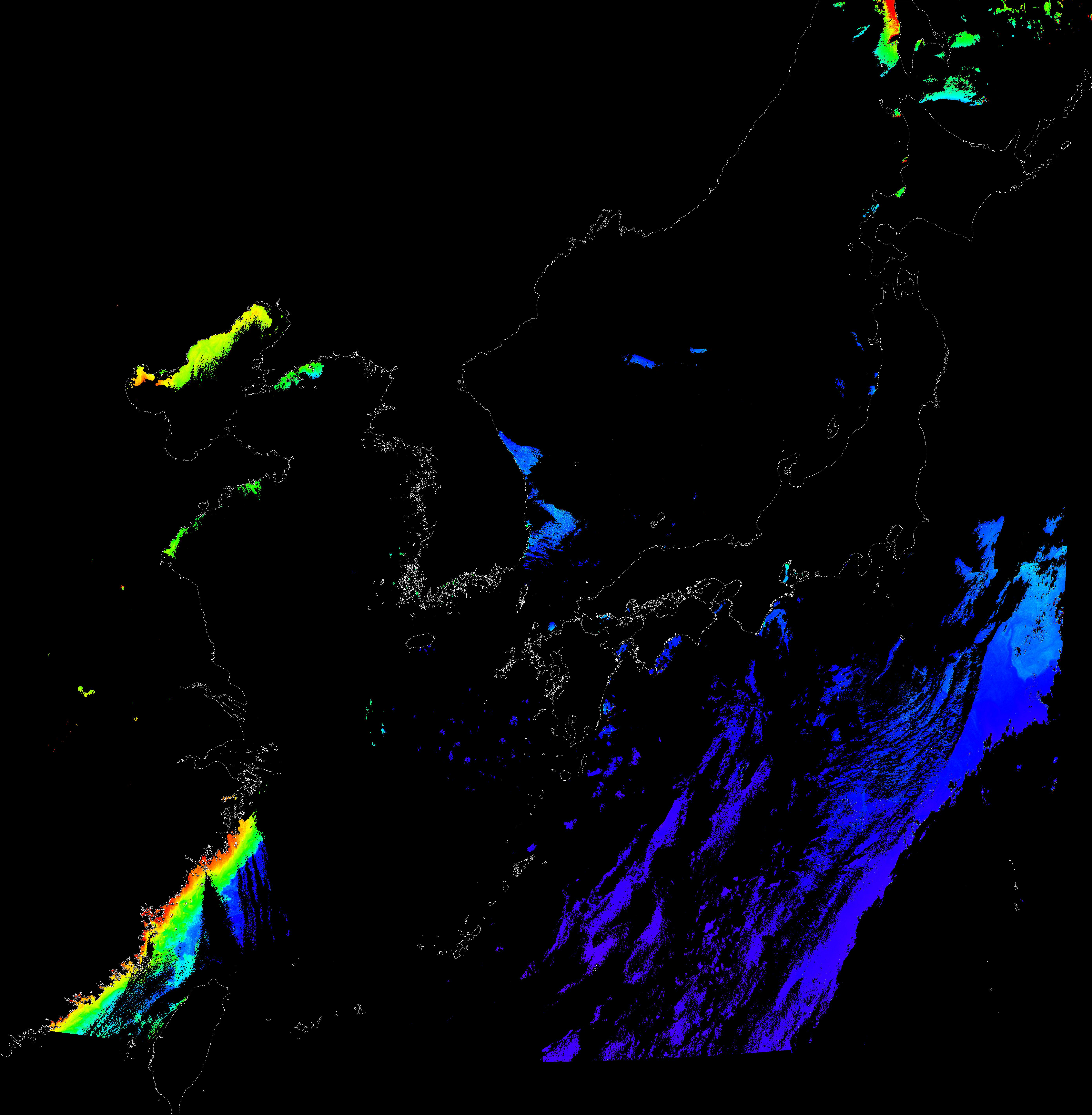 o 2015년 11월 26일 천리안 GOCI 클로로필 a 위성영상입니다.