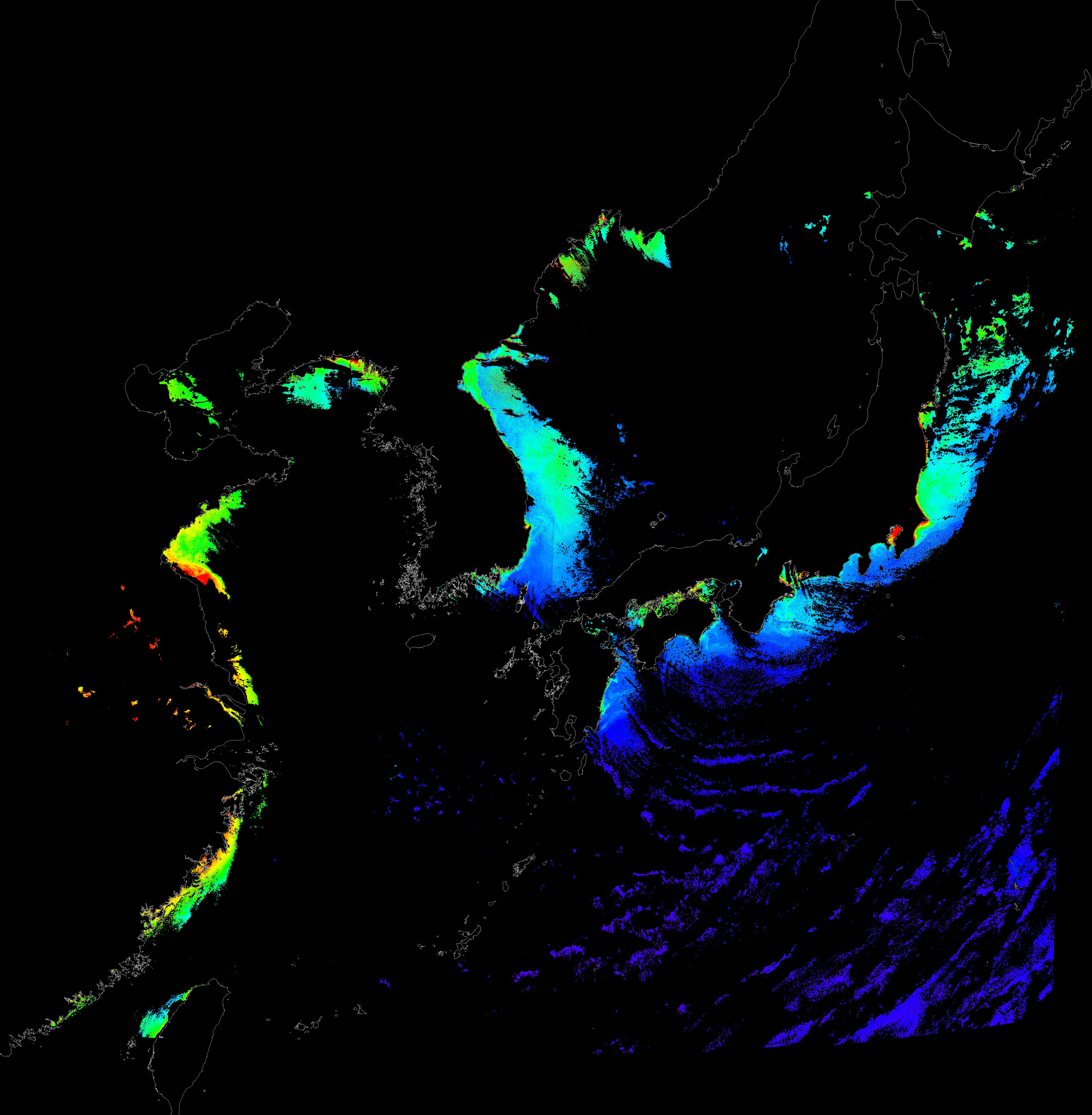 o 2015년 11월 27일 천리안 GOCI 클로로필 a 위성영상입니다.